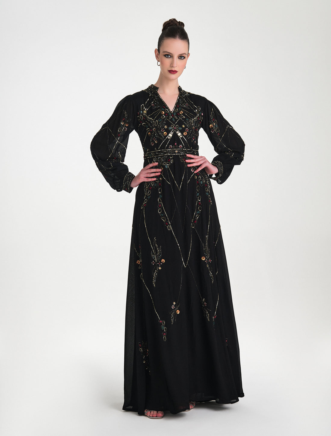 فستان سهرة بأكمام طويلة مطرز يدويا