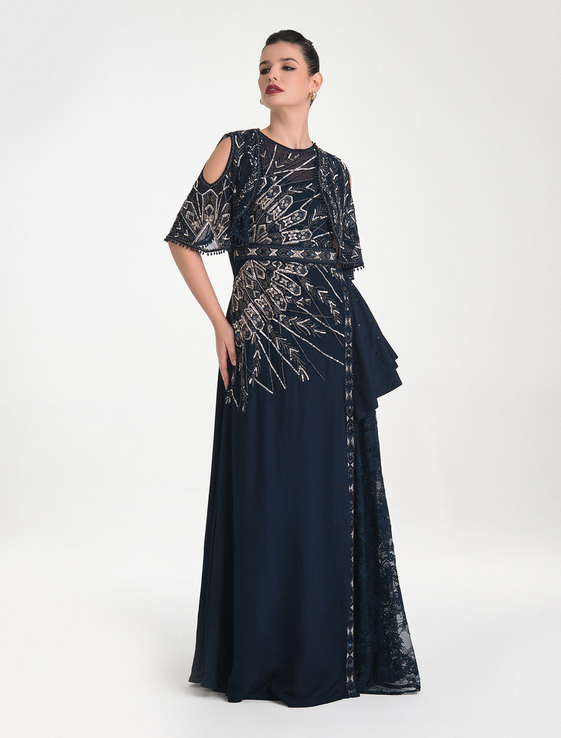 فستان سهرة مع جاكيت قصير مطرّز يدويًا