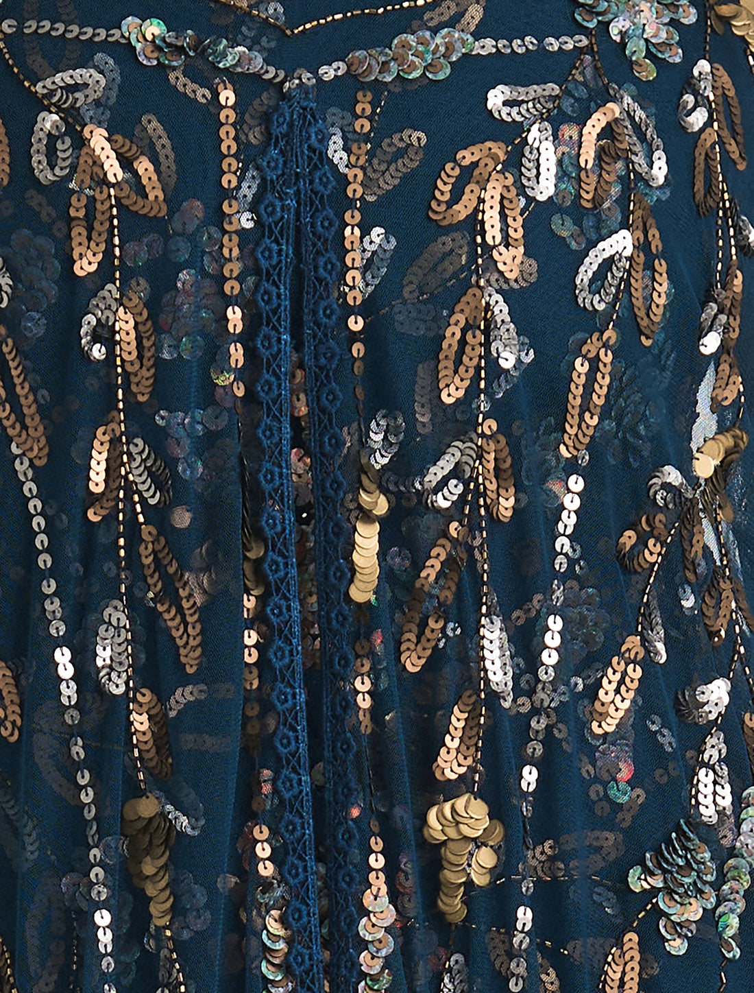 فستان سهرة كحلي بأكمام متوسطة الطول فضفاضة
