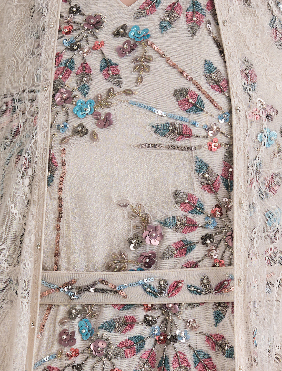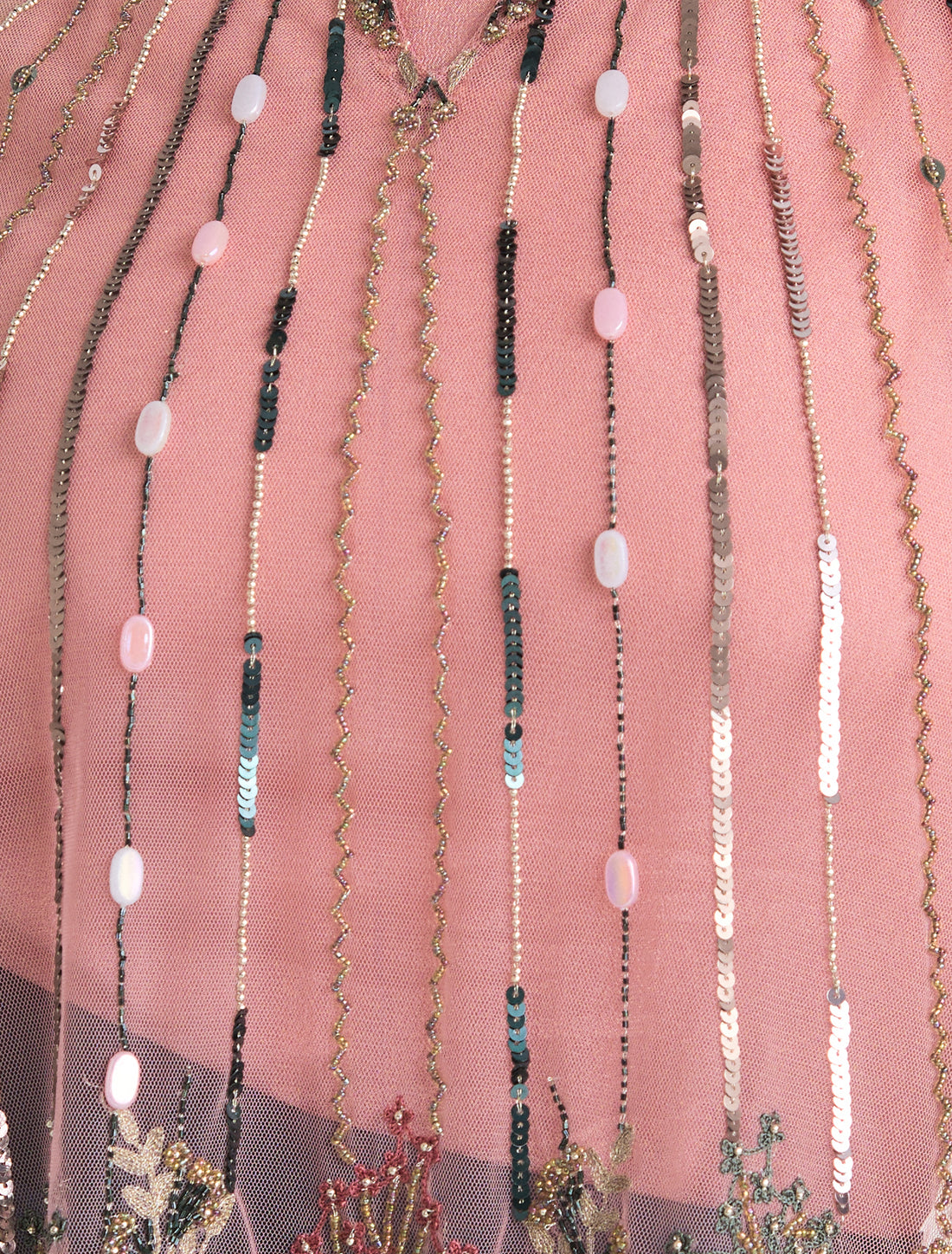 فستان راقي وناعم مطرز بتطريزات ورود متقنة الصنع