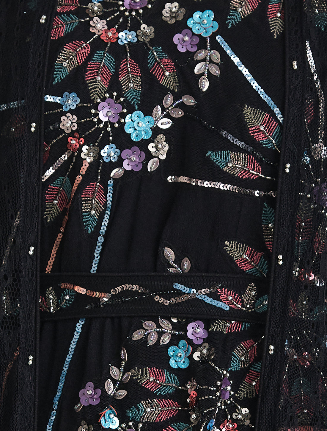 هذا فستان راقي وناعم لون أسود من شالكي بلمسة شرقية بتطريزات عالية الدقة. تأتي الياقة...
