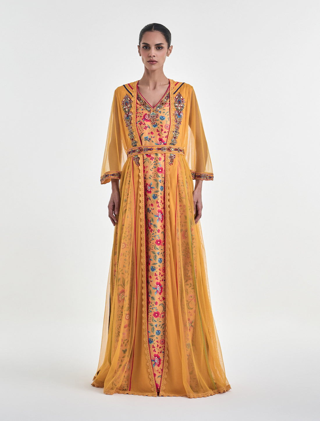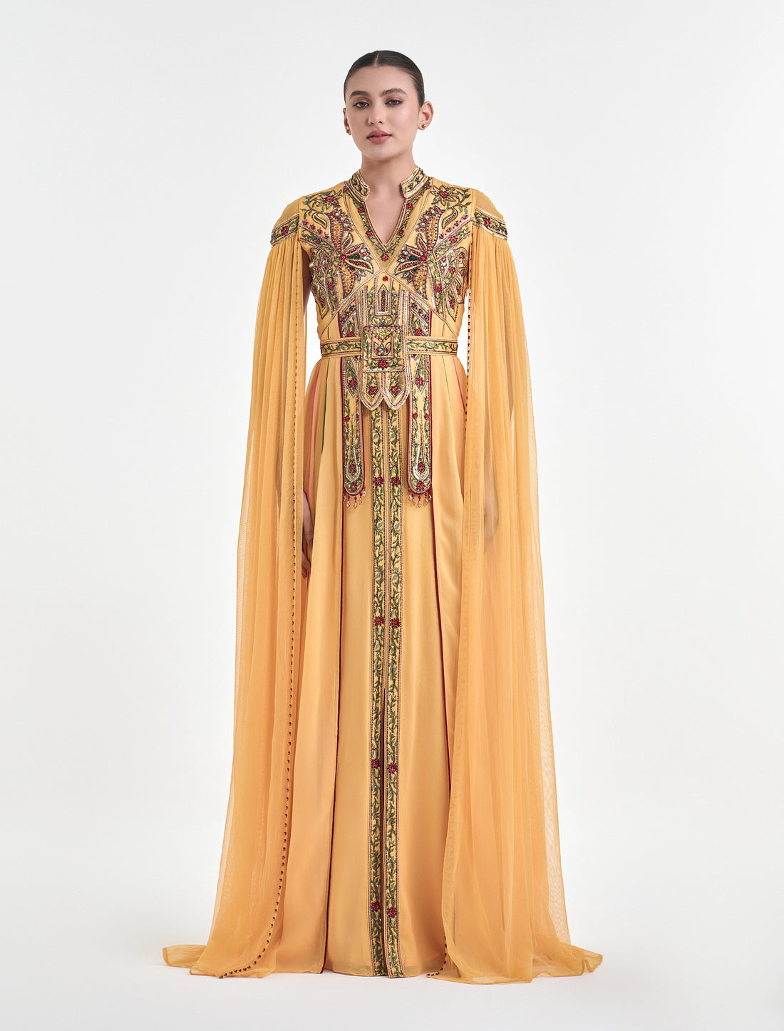 فستان سهرة مطرز يدويًا من ماركة شالكي اللون: اصفرالطول: 60 بوصة لجميع المقاسات الخامة: تولتطريز...