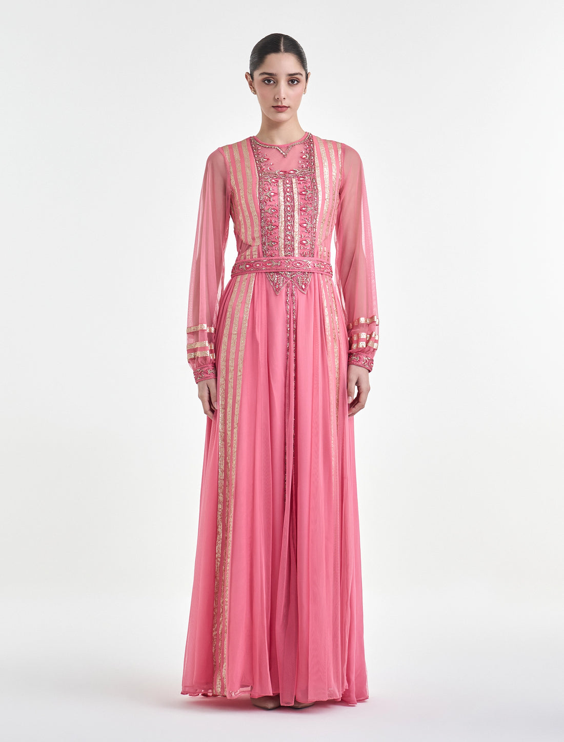فستان سهرة مطرز يدويًا من ماركة شالكي اللون: ورديالطول: 60 بوصة لجميع المقاسات الخامة: تولتطريز...