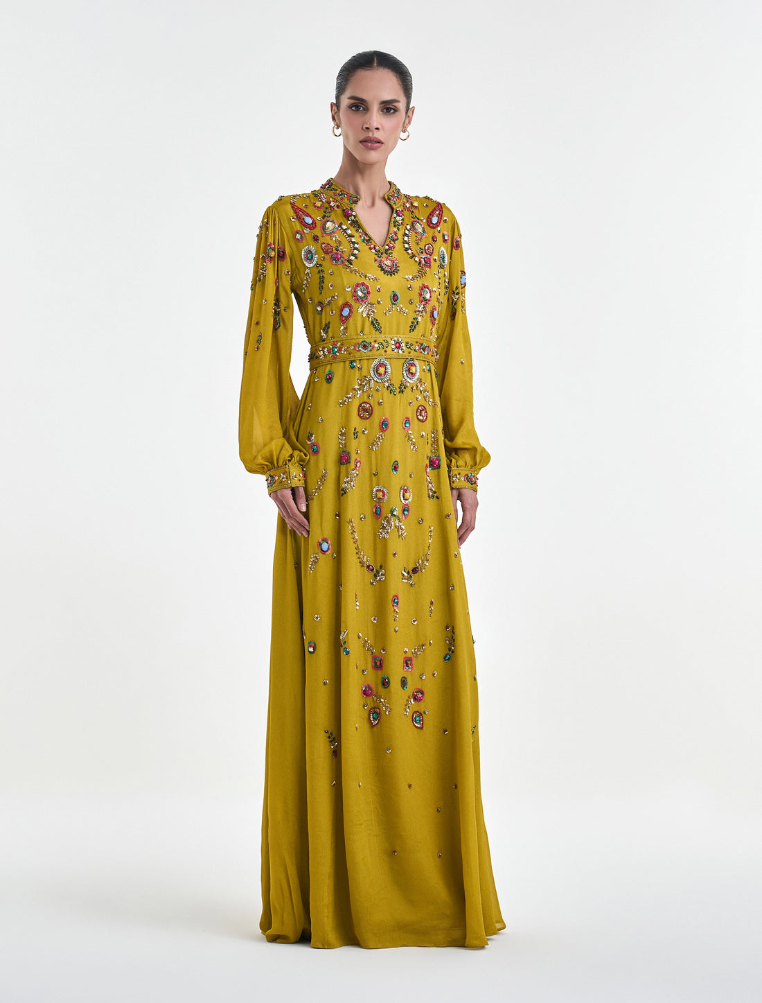 فستان سهرة مطرز يدويًا من ماركة شالكي اللون: اصفرالطول: 60 بوصة لجميع المقاسات الخامة: كريبتطريز...