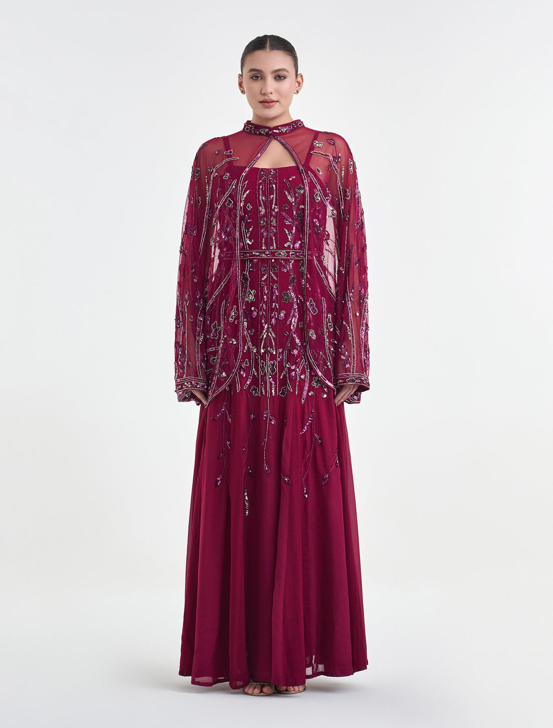 فستان سهرة مطرز يدويًا من ماركة شالكي الألوان: فوشيا، بيج، زيتونيالطول: 60 بوصة لجميع المقاسات...