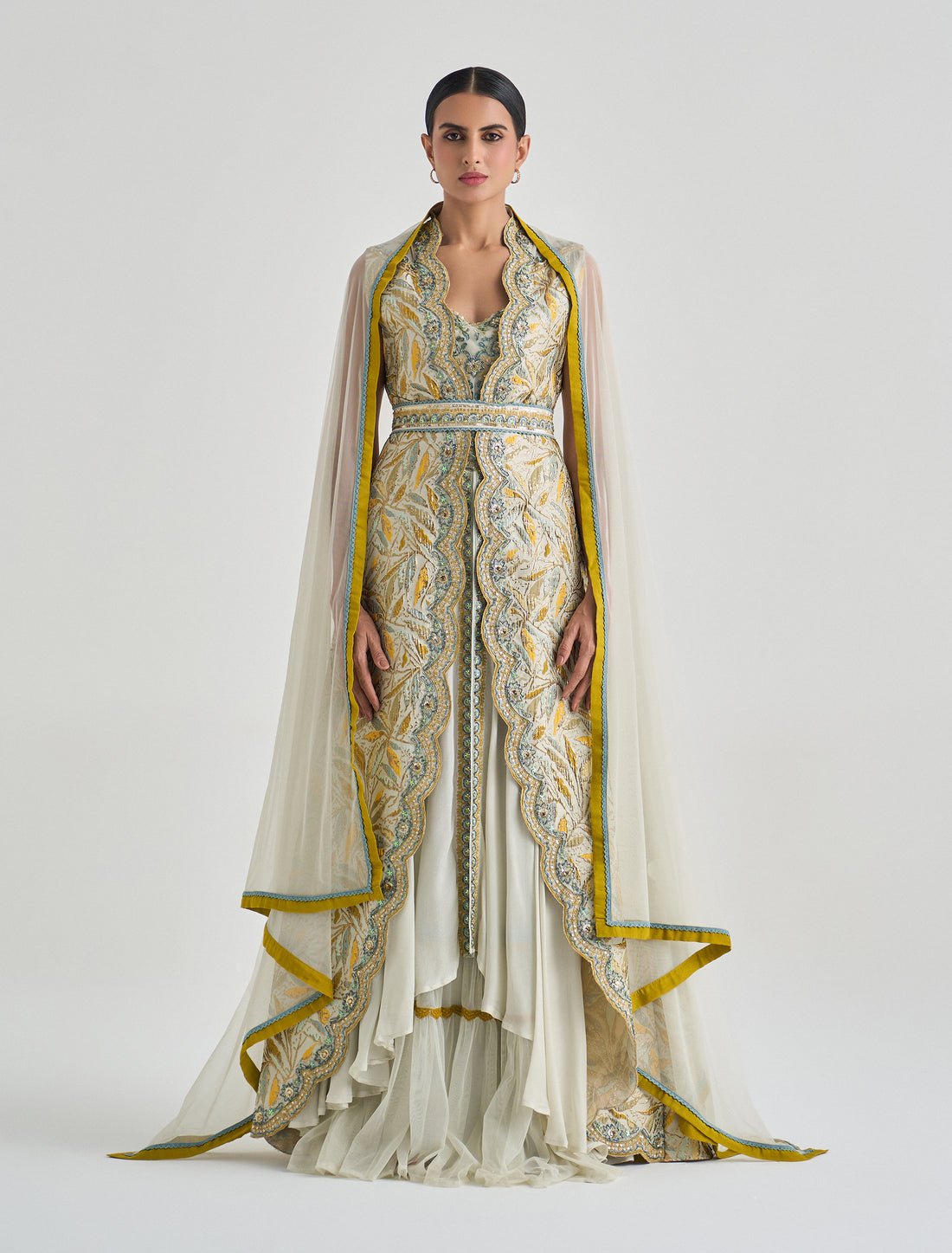 Hand-embroidered evening dress from Shalky brand Color: YellowLength: 60 inches for all sizes. Material: velvet...