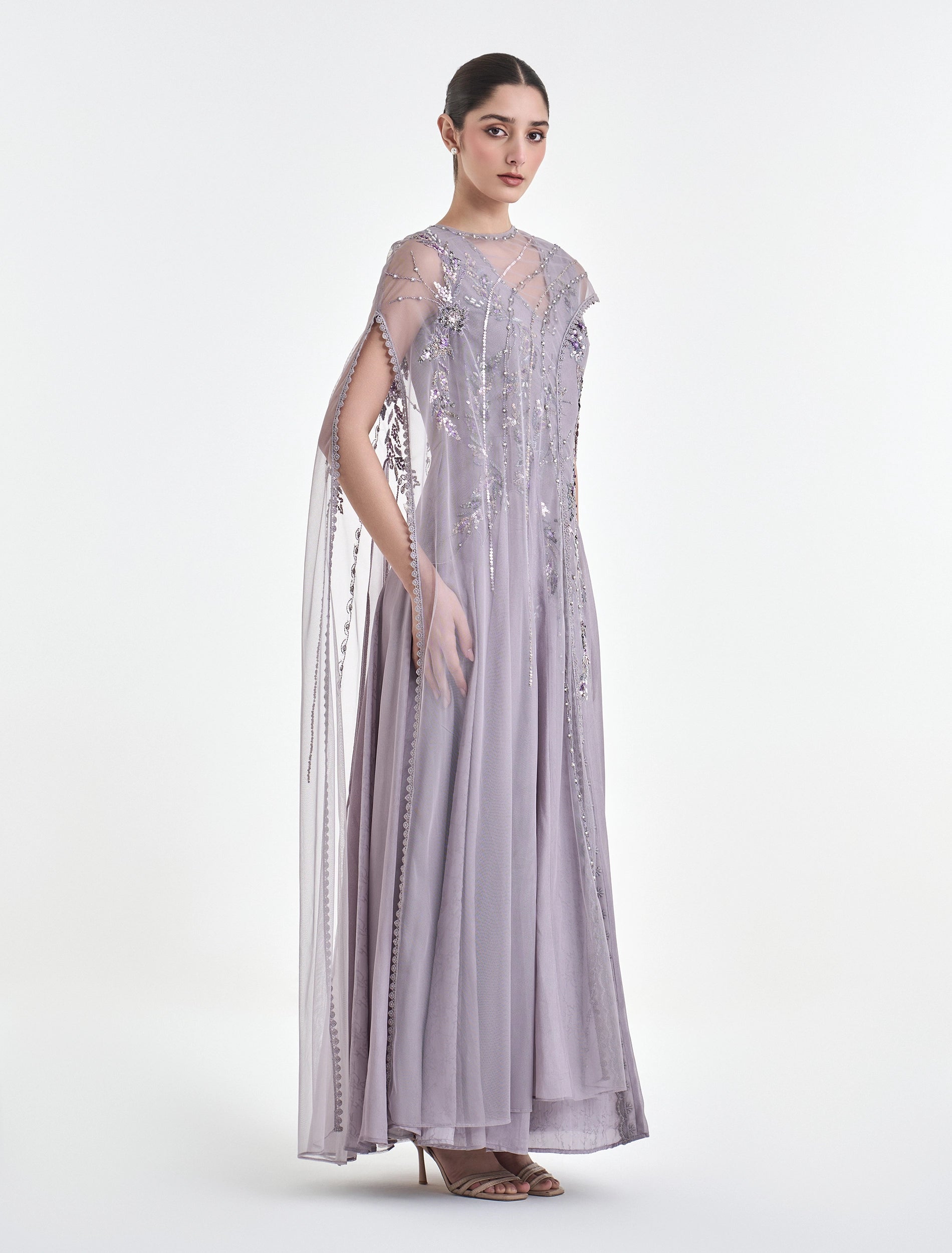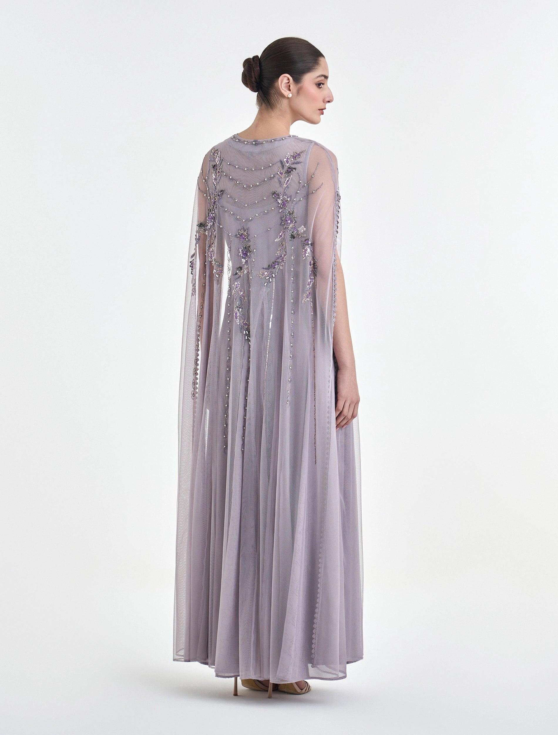 An evening dress with delicate details and a smooth cut