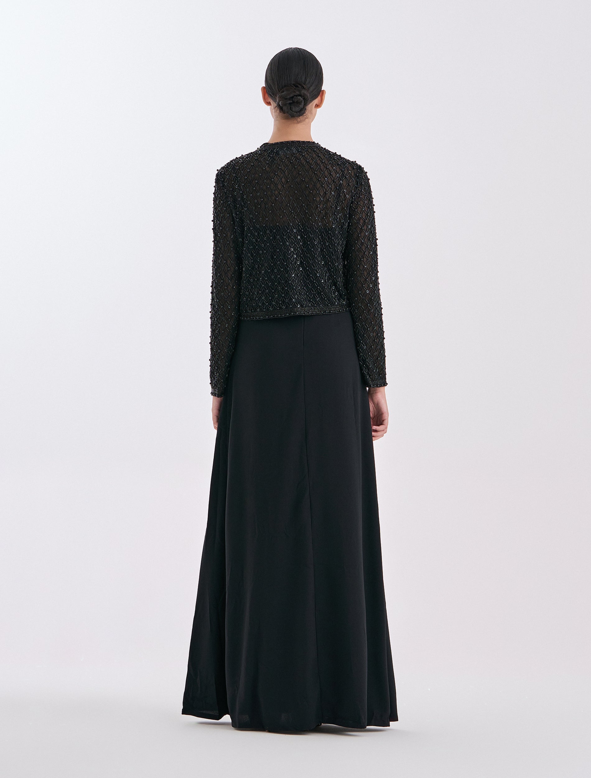 - Embroidery: Beaded dress with sparkling black beaded hand embroidery and a stylish design from Shalky