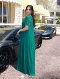 Own Shalky’s dark green hand-embroidered evening dress and shine with royal elegance at every occasion.