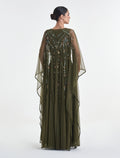 Dark Olive-Green Dress with Royal Cape