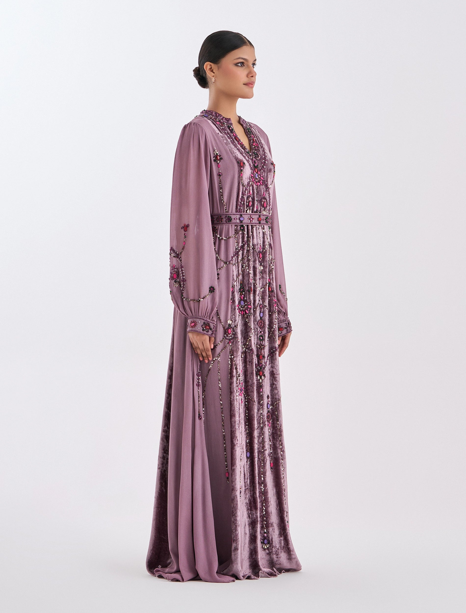 Distinctive embroidery on the front with a V-neck, designed for parties and occasions.