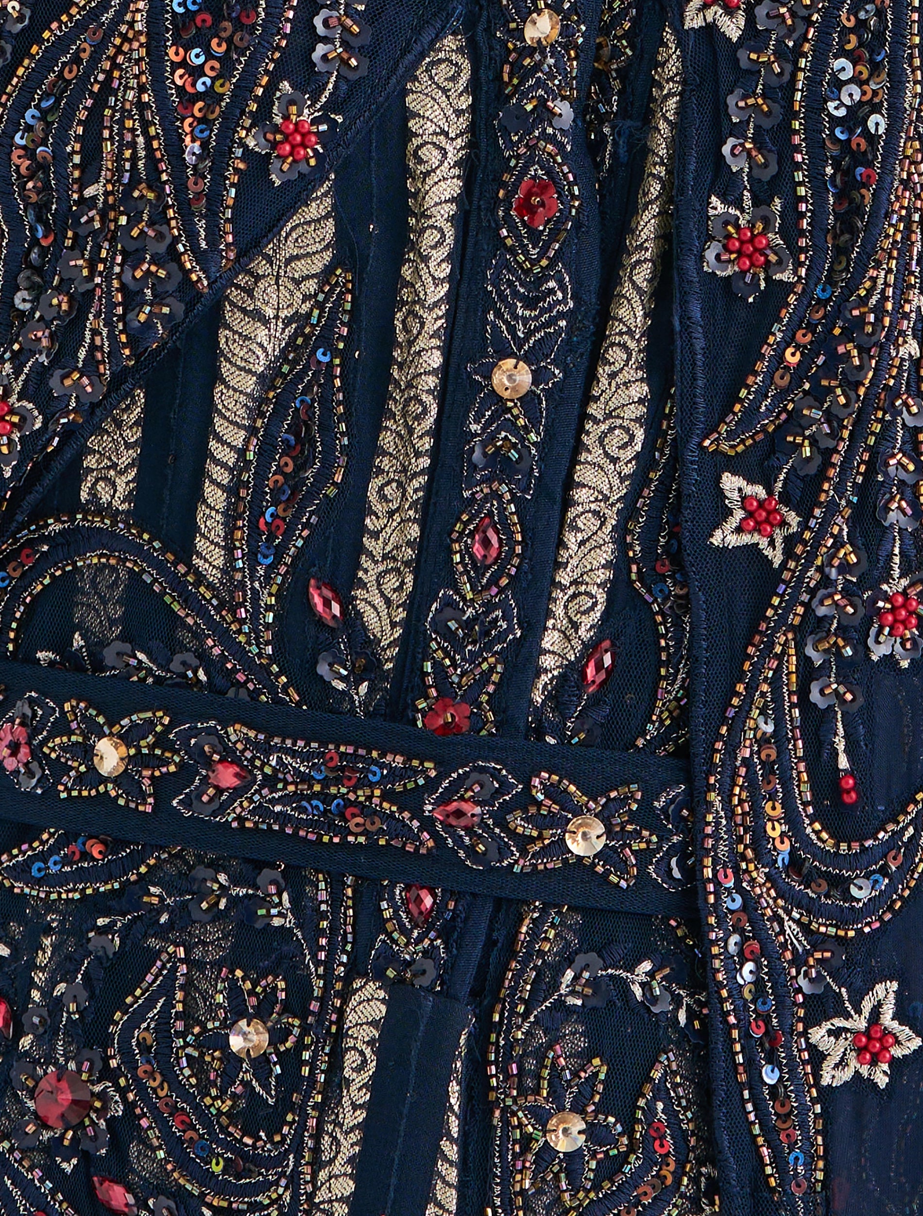 Stand out with this stunning jumpsuit for women in dark blue with shimmering hand embroidery from Shalky.