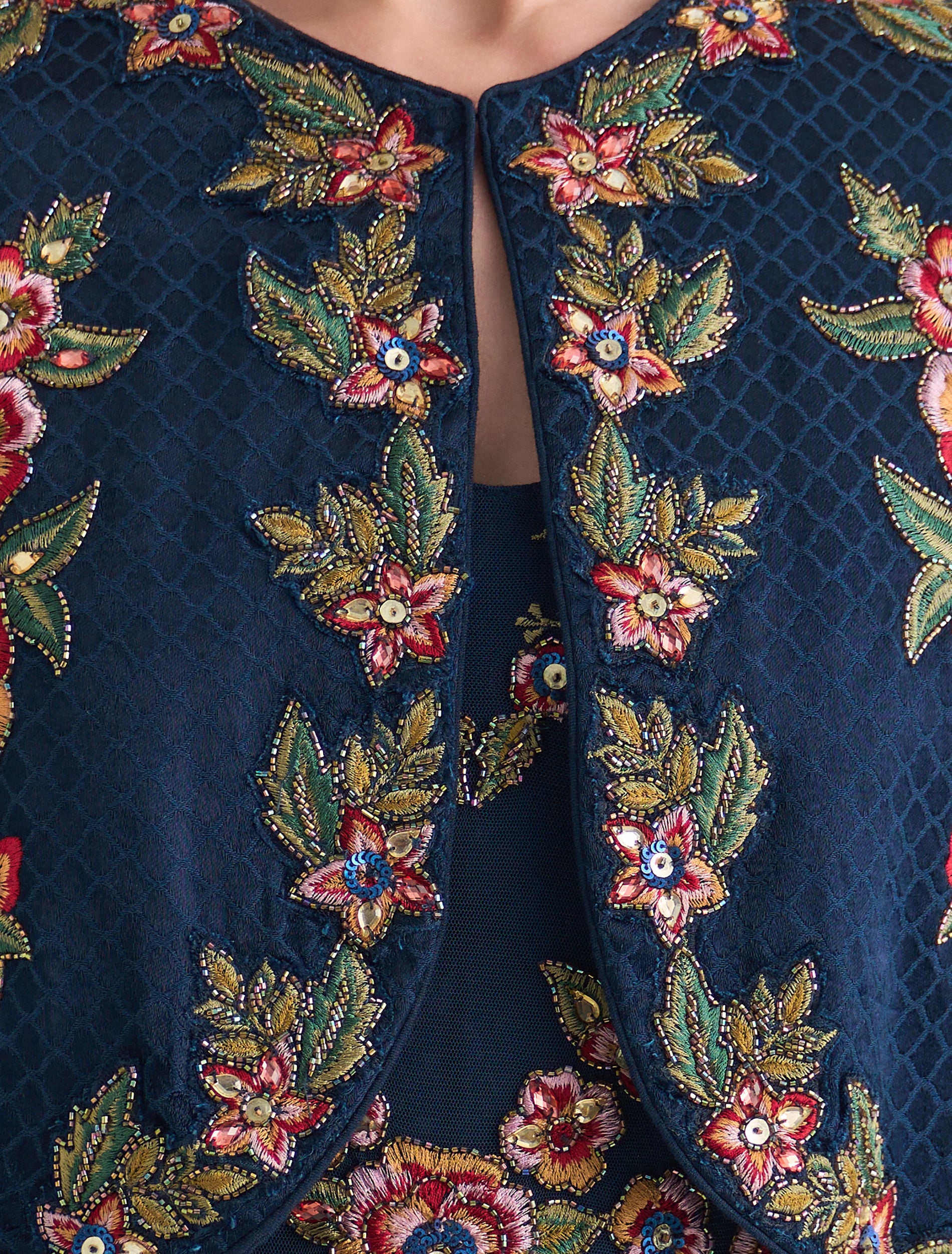 Distinctive embroidery on the front with a V-neck, designed for parties and occasions.