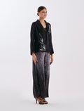 Pair it with gold jewelry and shiny sandals for a luxurious look..