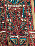 Embroidery: Crafted with hand-stitched threads in red, gold, and blue, creating distinctive geometric motifs. - Fabric: Jacquard & tulle fabric