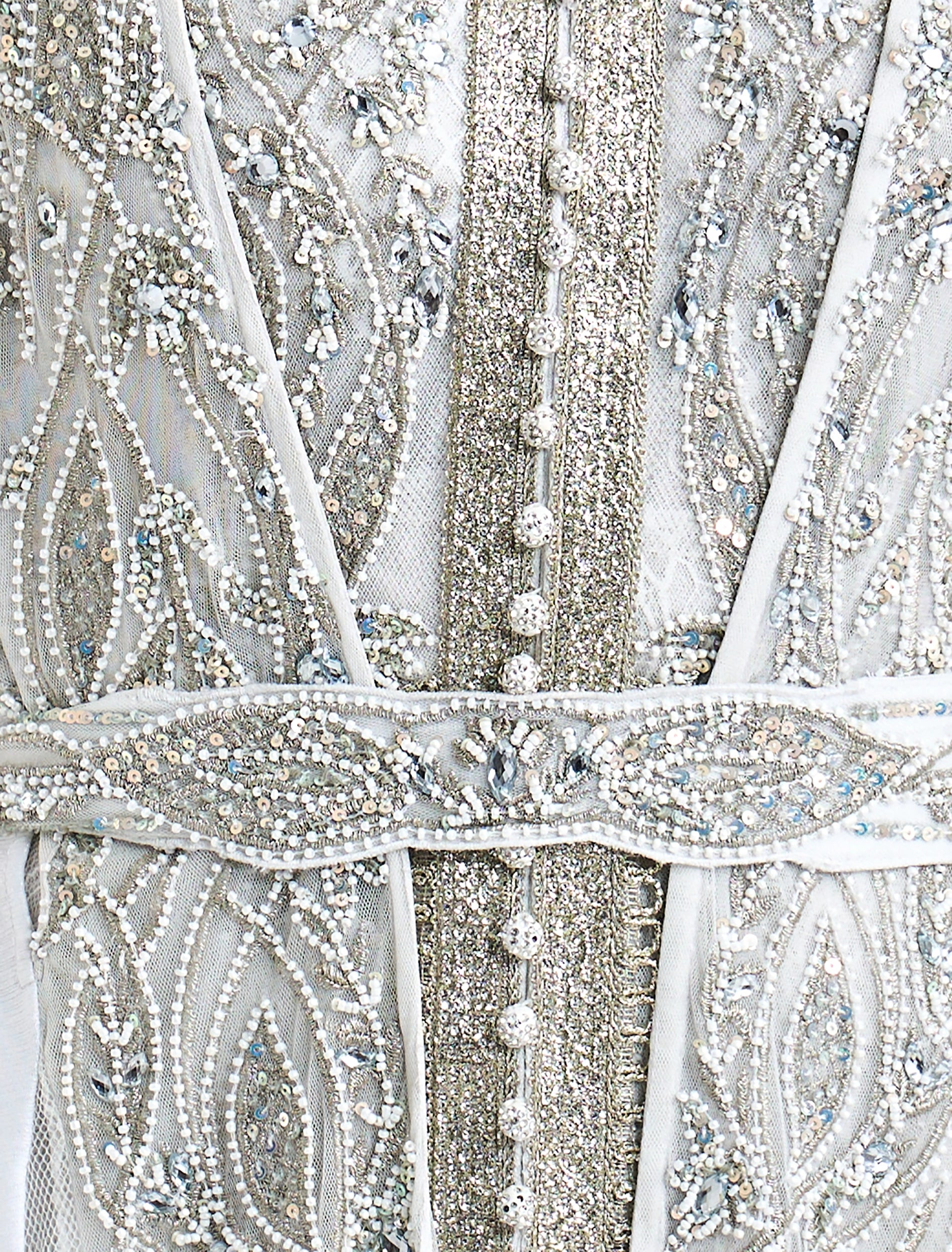 - Embroidery: White embroidered dress with refined intricate embellishments in silver and blue accents