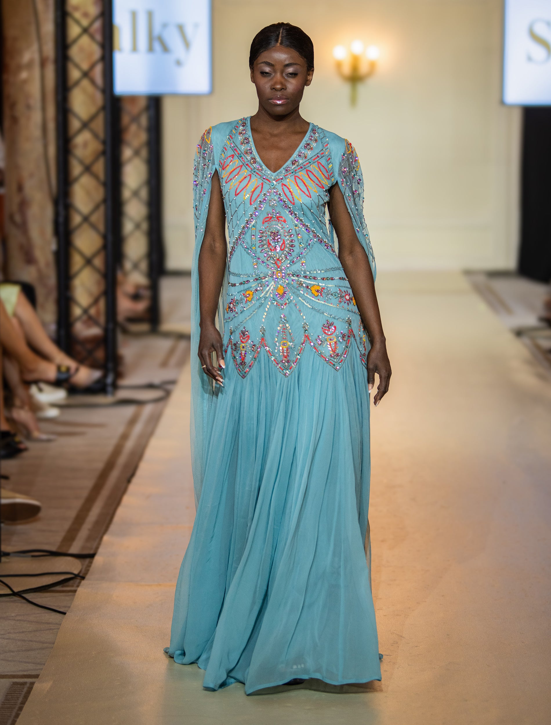 Turn heads at your next event with Shalky’s long hand-embroidered turquoise evening dress. Explore more of Shalky’s modest evening dresses and luxury gowns here.