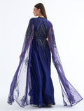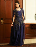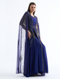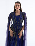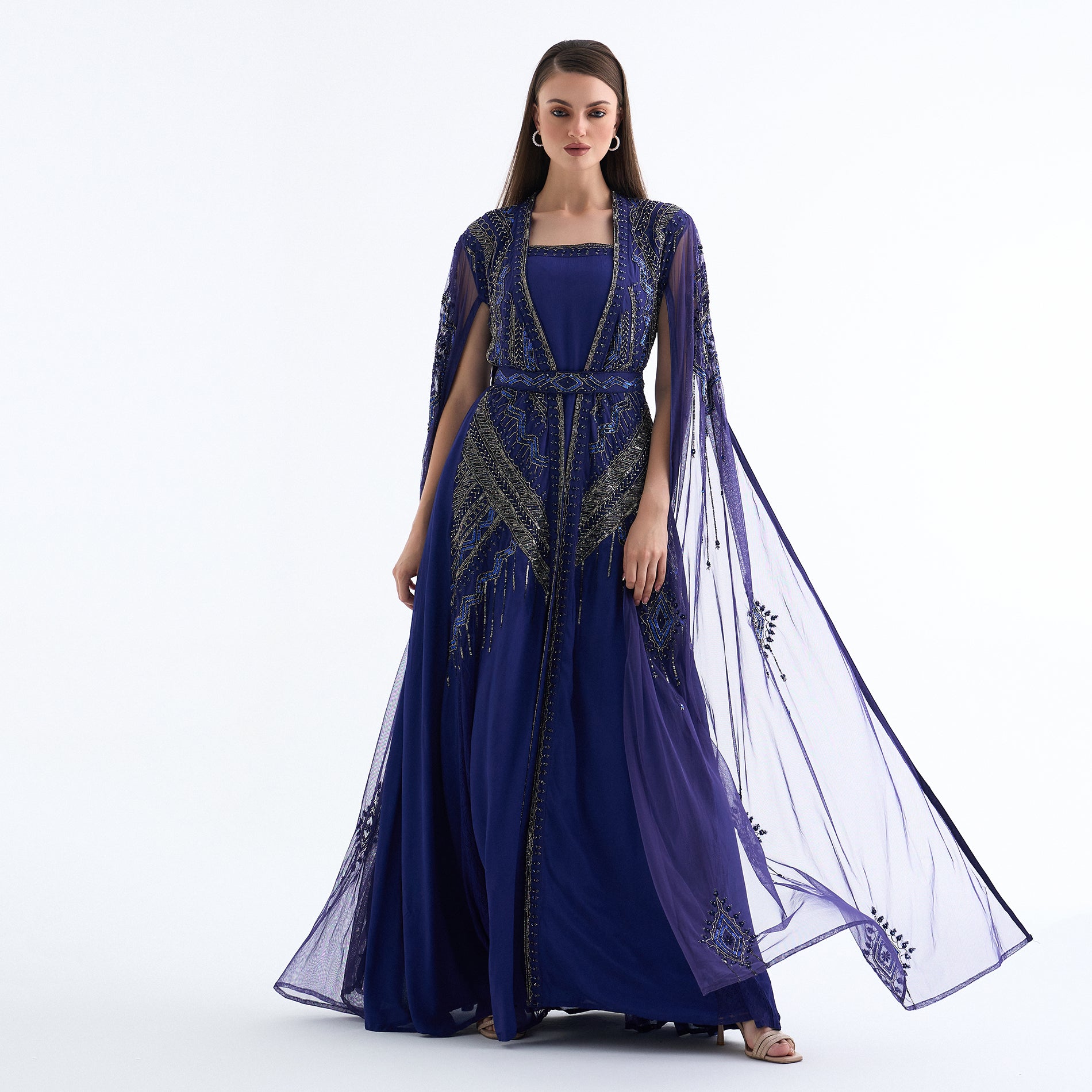 Stand out with us in a charming style in this luxurious long navy dress by Shalky, skillfully designed to combine opulence and femininity. The dress features elegant red and green embroidery adorning the bust, chiffon sleeves, and the back as well, which imparts an elegant artistic touch. Made of light, soft fabric with a length of 60 inches, making you feel comfortable and charming at any occasion. It’s distinguished by a classic rounded neckline, which adds a touch of simplicity and elegance, and chiffon cape sleeves, giving it a regal look. Dry cleaning is recommended to maintain its elegant appearance.