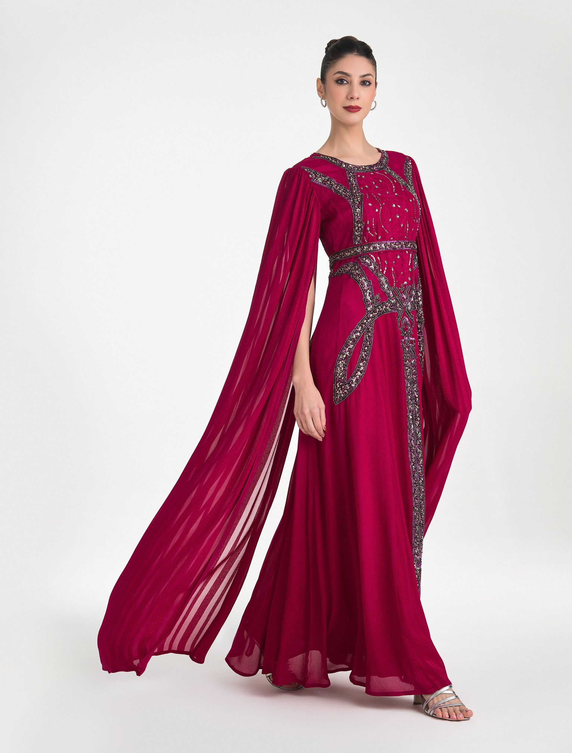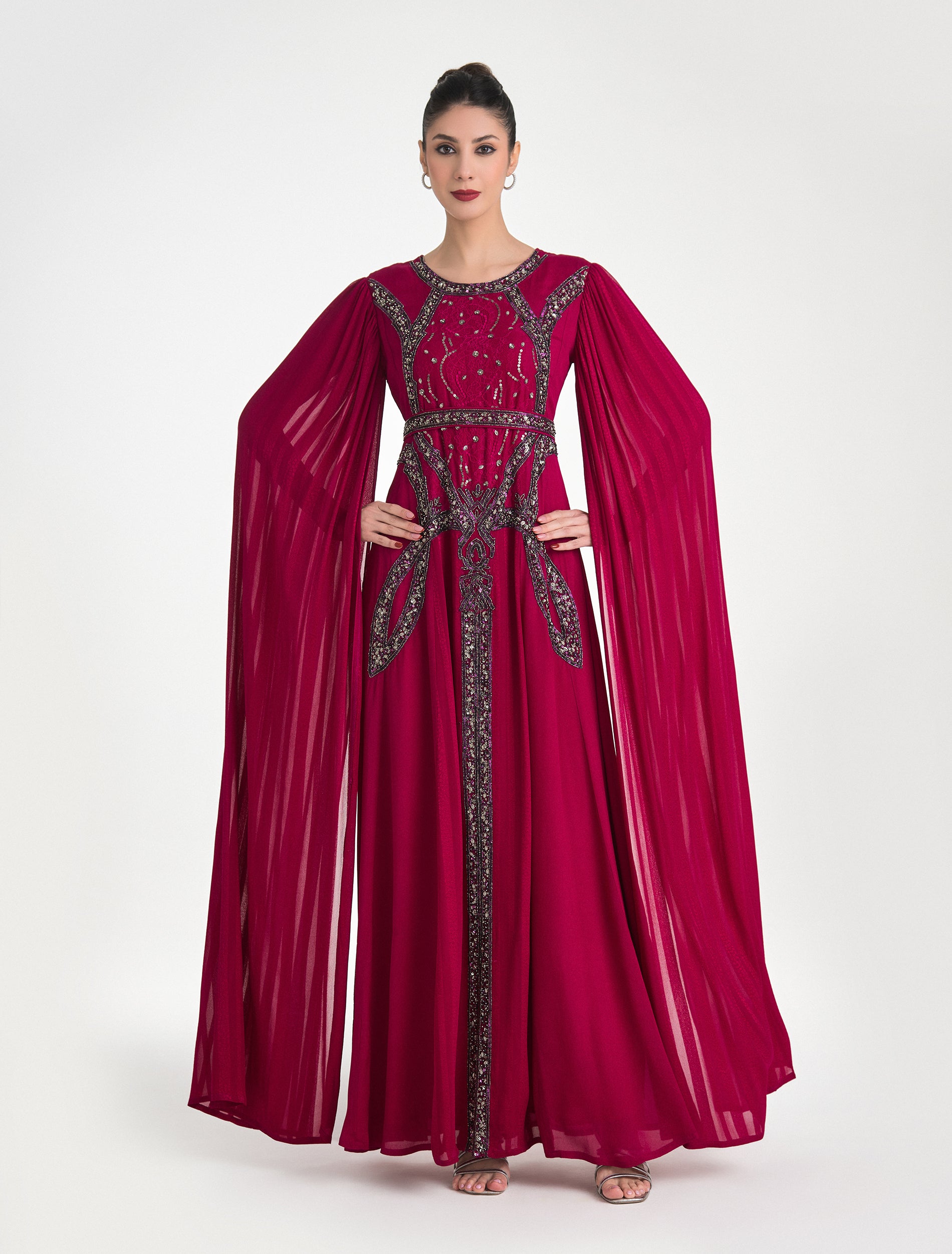 Dress with Elegant Artistic Design and Gracefully Flowing Sleeves