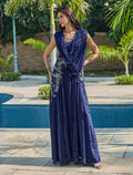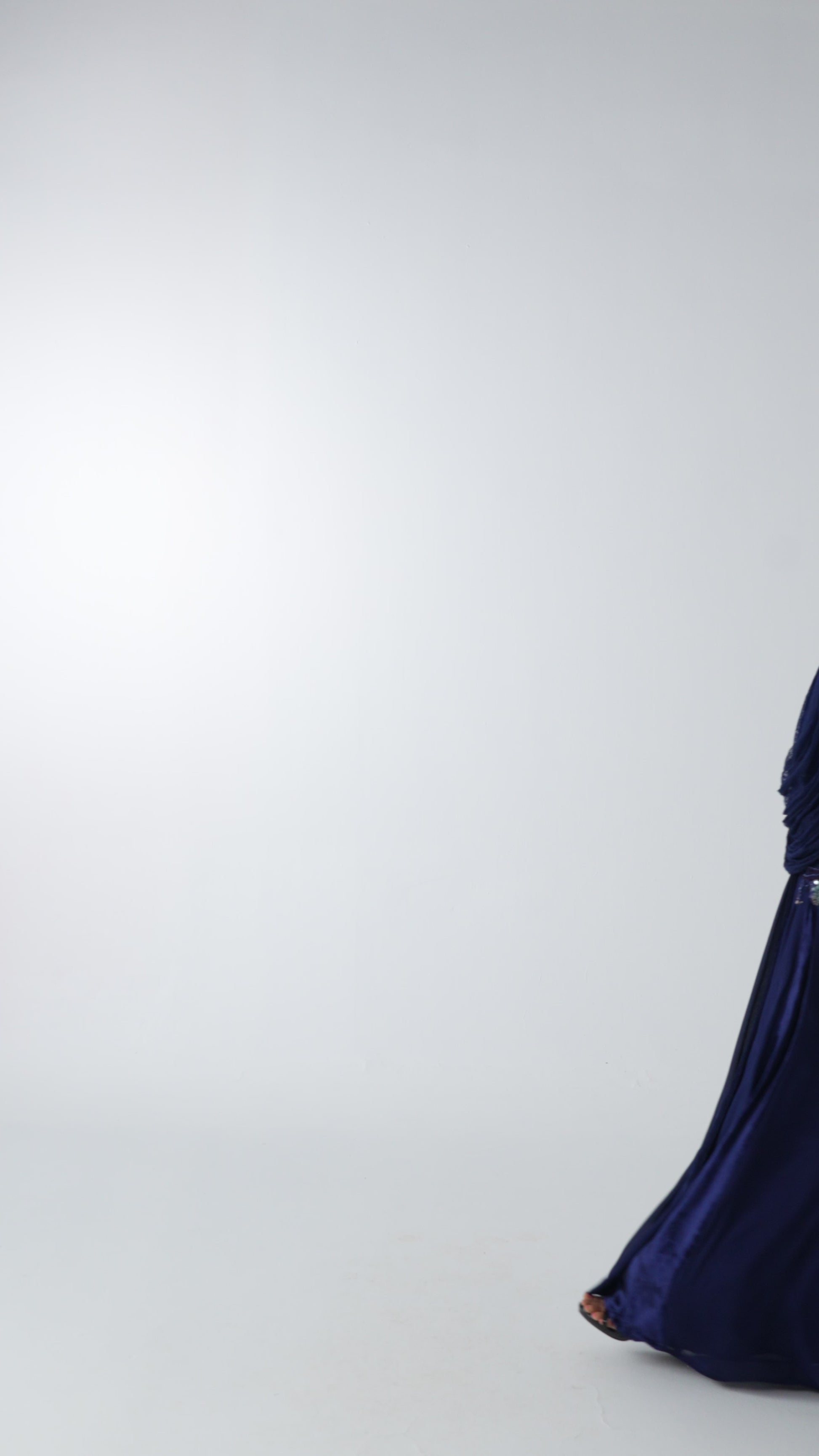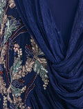 If you're looking for a party dress or a navy lace dress, choose this navy evening dress with a draped waist and intricate embroidery from Shalky.