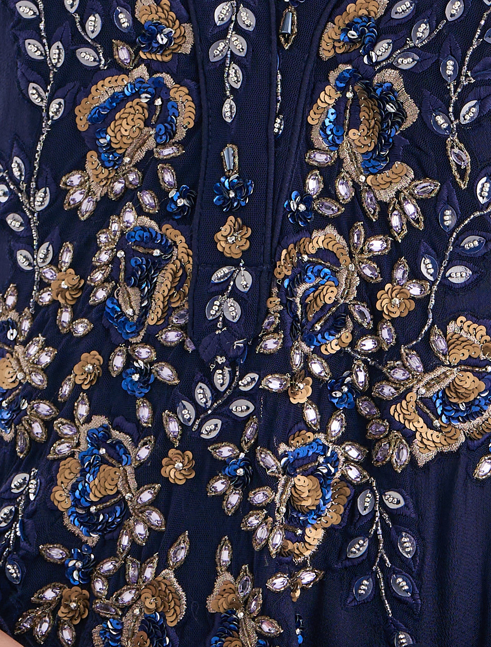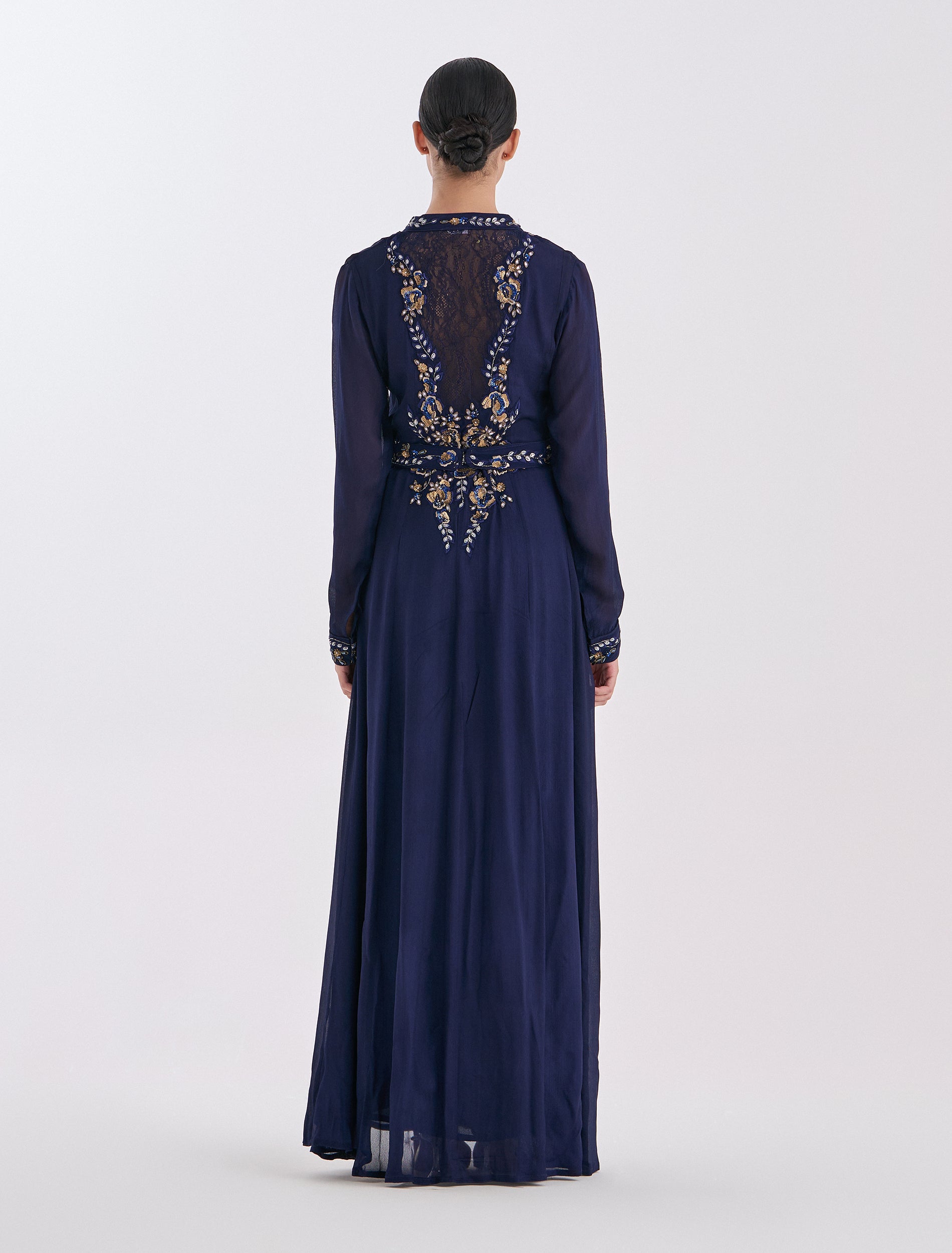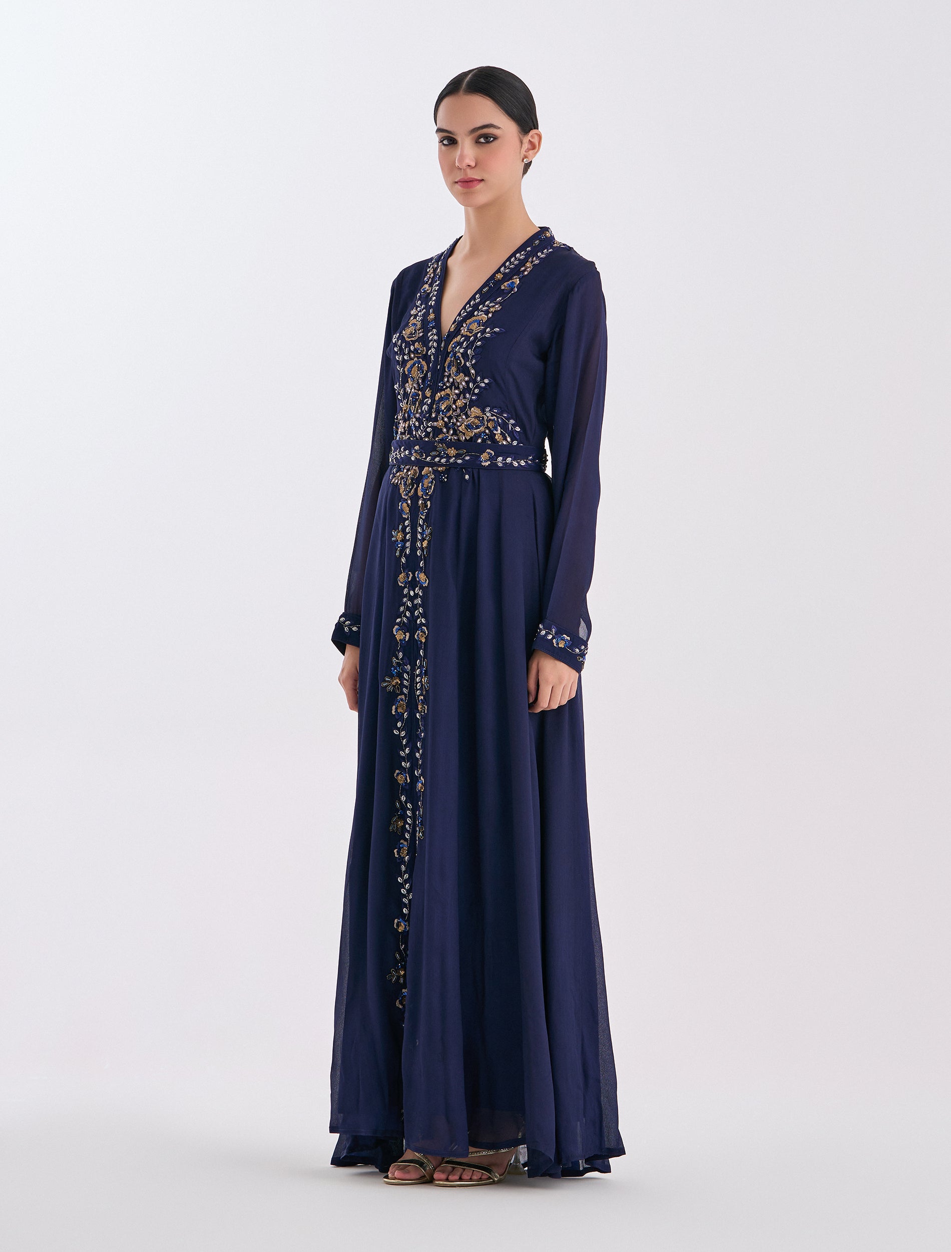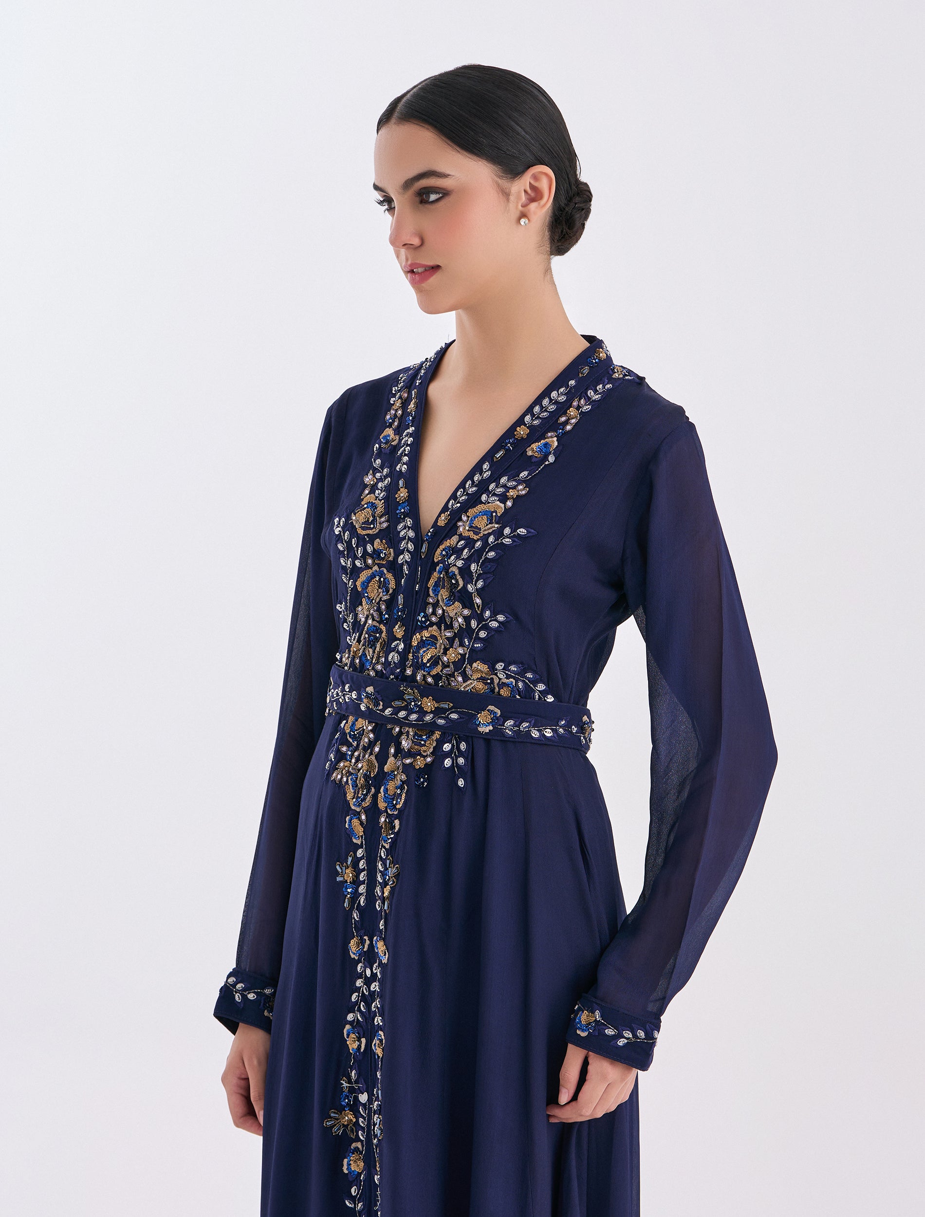 Distinctive embroidery on the front with a V-neck, designed for parties and occasions.