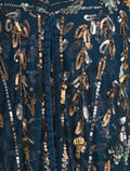 - Embroidery: Hand-embroidered navy evening dress with refined shimmering gold and silver threads