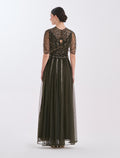 Shimmering Olive Hand-Embroidered Evening Dress