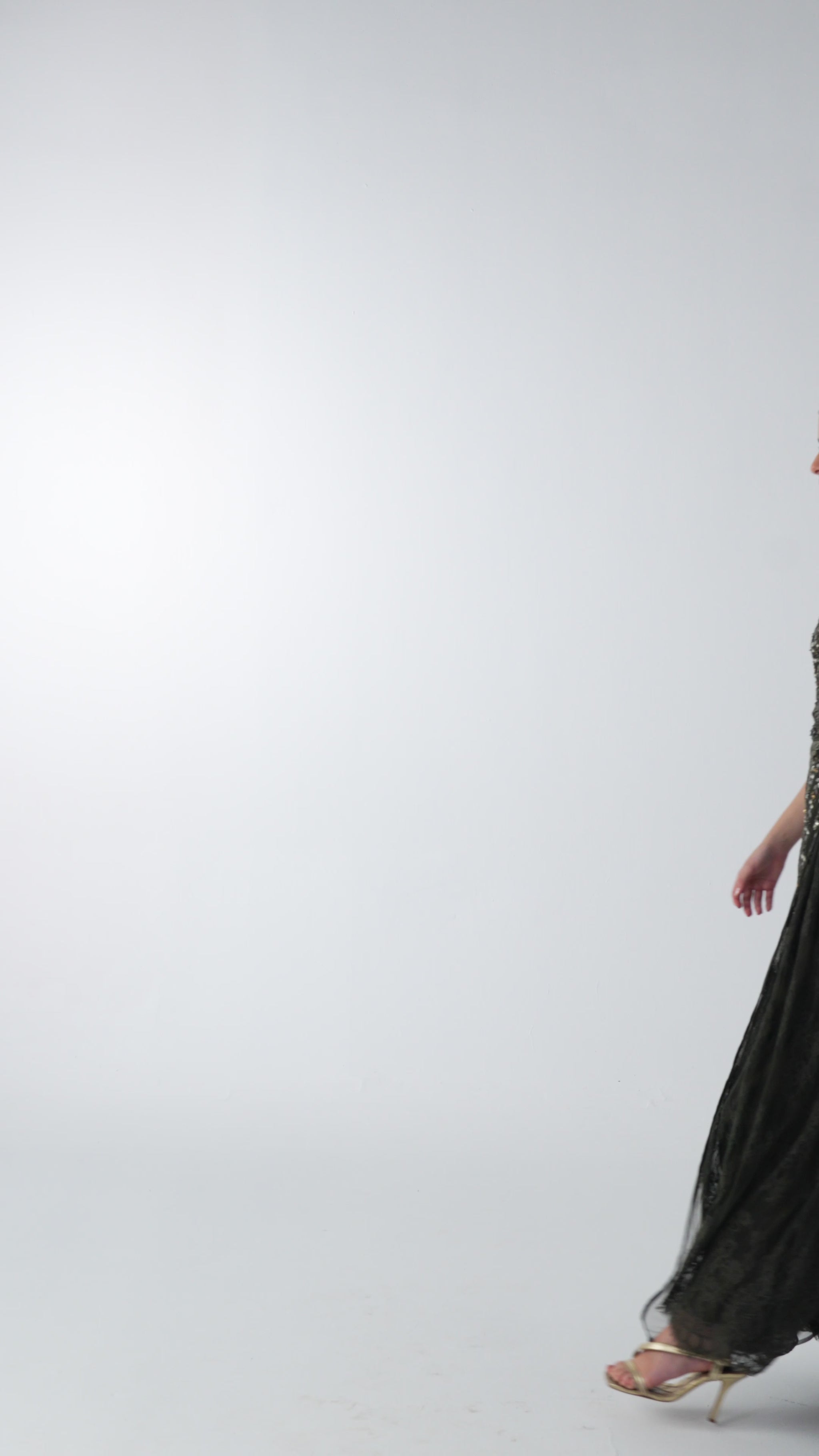 Embrace elegance with Shalky’s hand-embroidered olive evening dress with sequin and crystal accents. Explore more of our elegant evening dresses for perfect evening wear at luxury events, formal parties, and Gulf occasions.