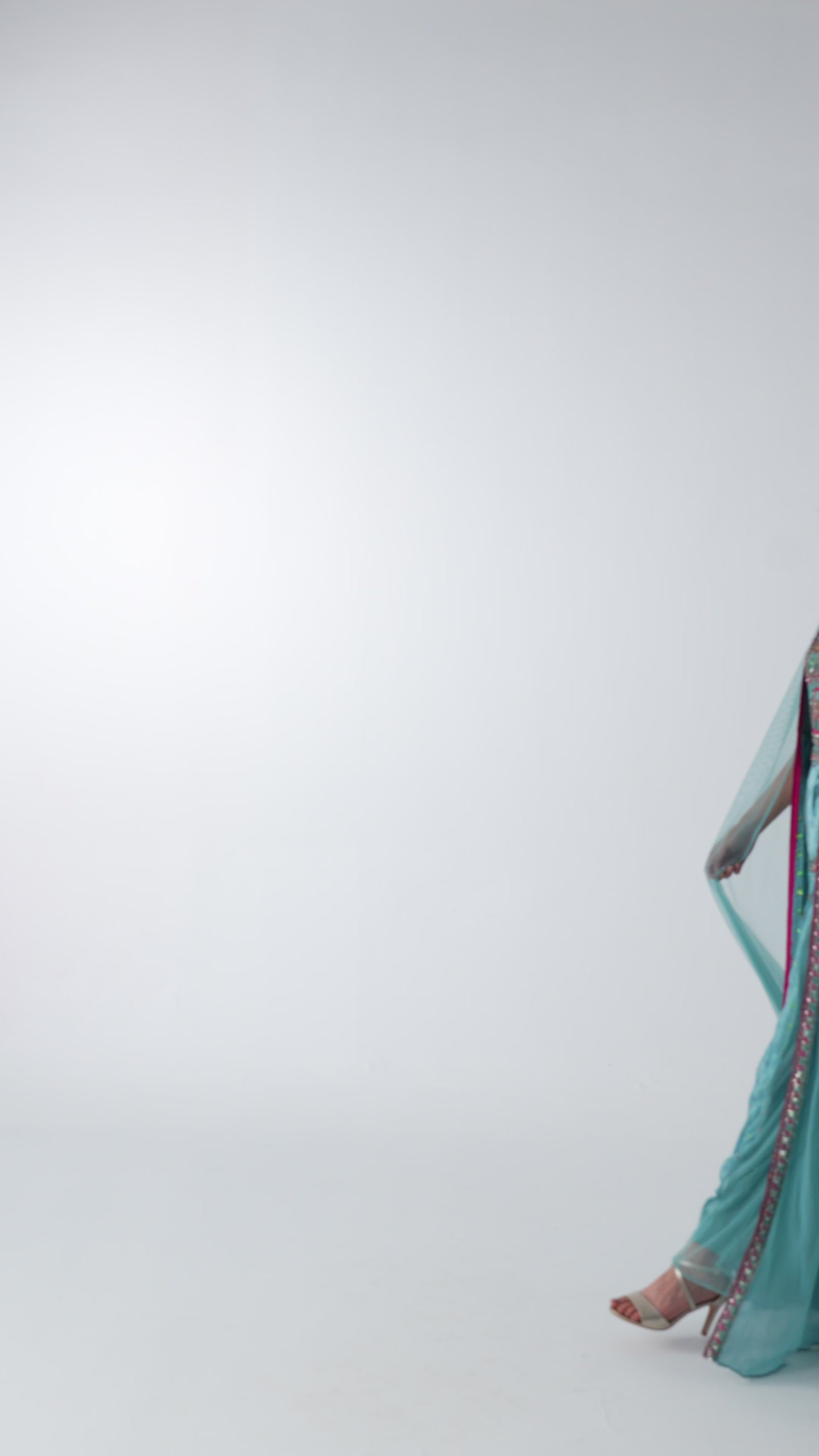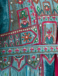 Soft turquoise velvet fabric on the lower part with elegant drape.
