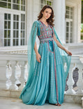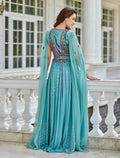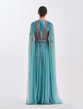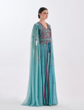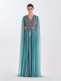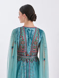Turquoise Velvet and Tulle Evening Dress