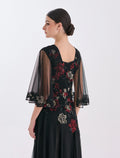 انعمي بإطلالة أنيقة مع فستان سهرة أسود طويل بأكمام ناعمة متوسطة الطول من أرقى فساتين سهرة طويلة من شالكي.