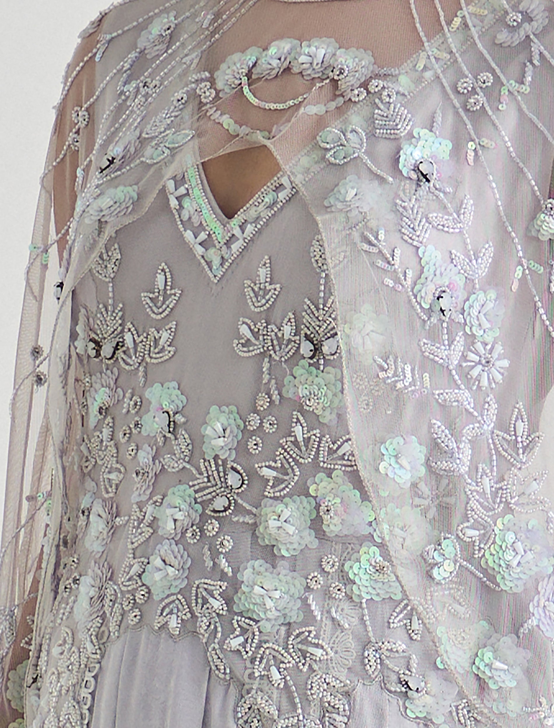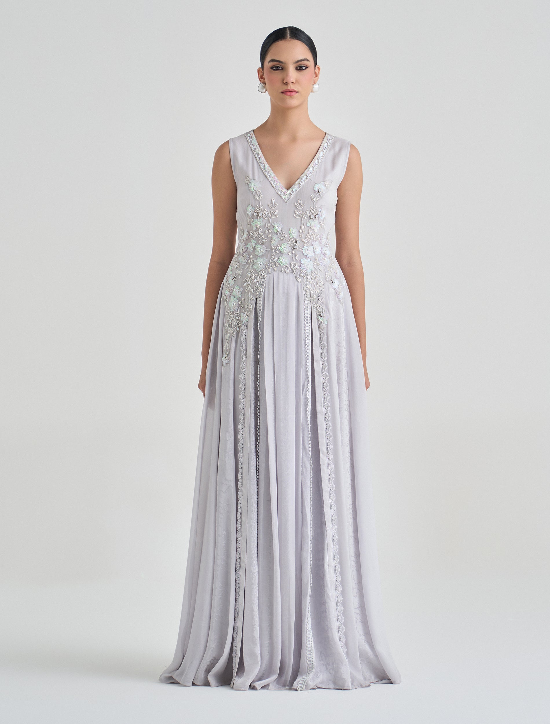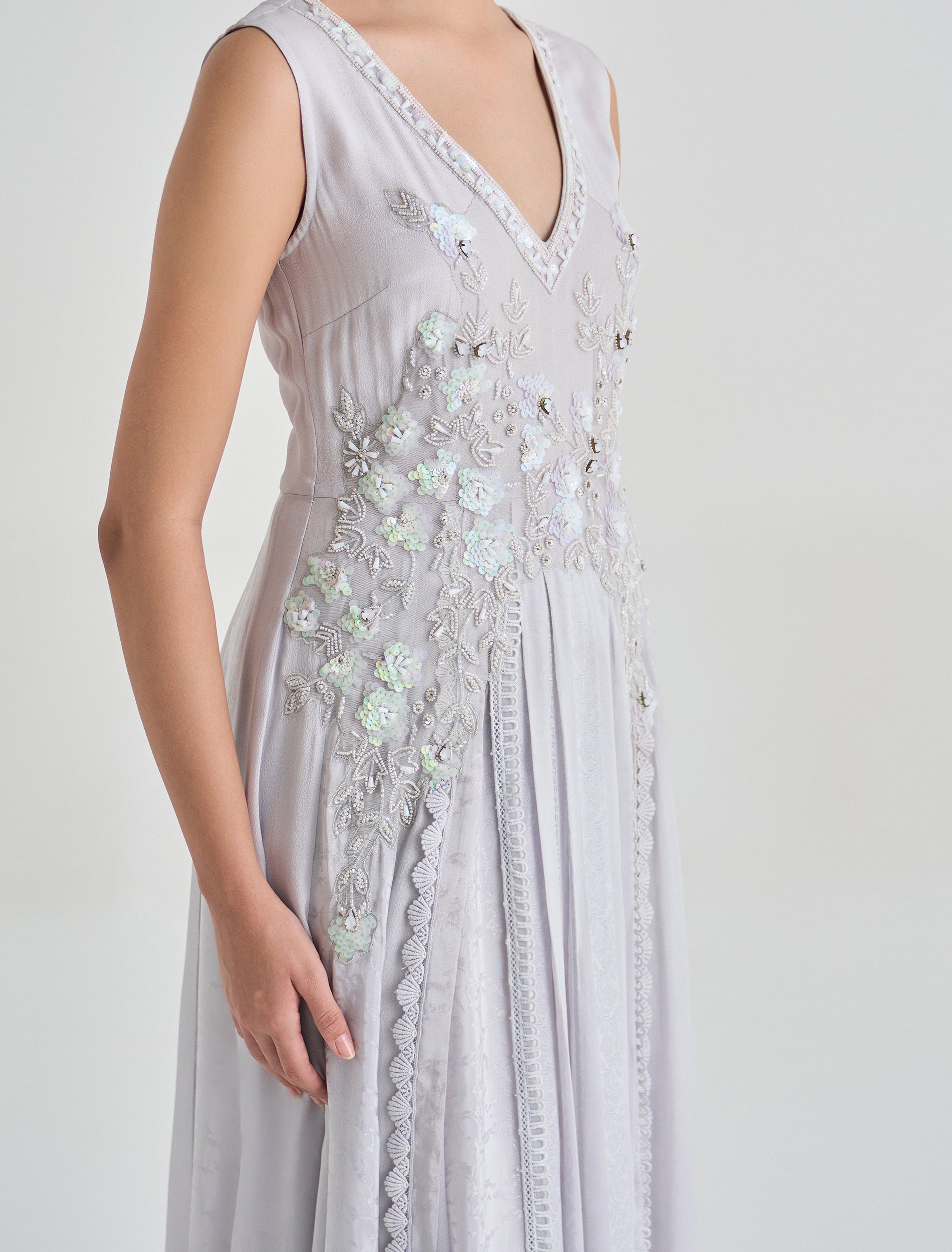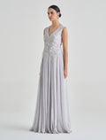 تطريز مميز من الأمام مع رقبة على شكل حرف V، مصمم للحفلات والمناسبات.