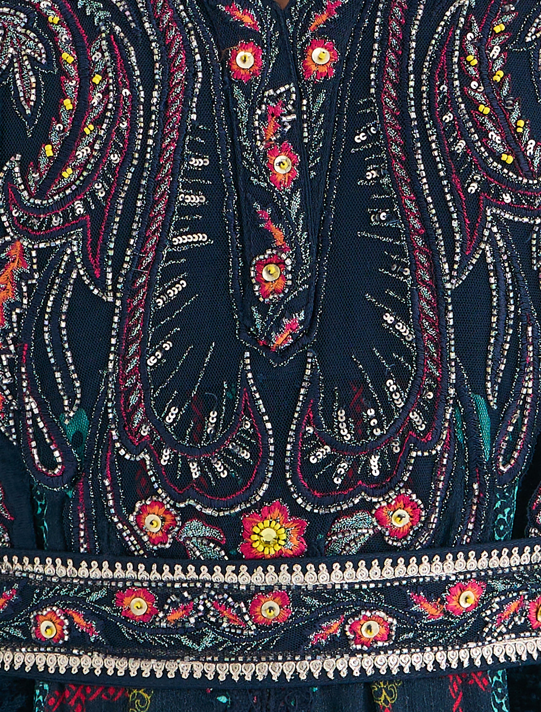 الأكمام: أكمام كيمونو 3/4 فضفاضة مطرزة.