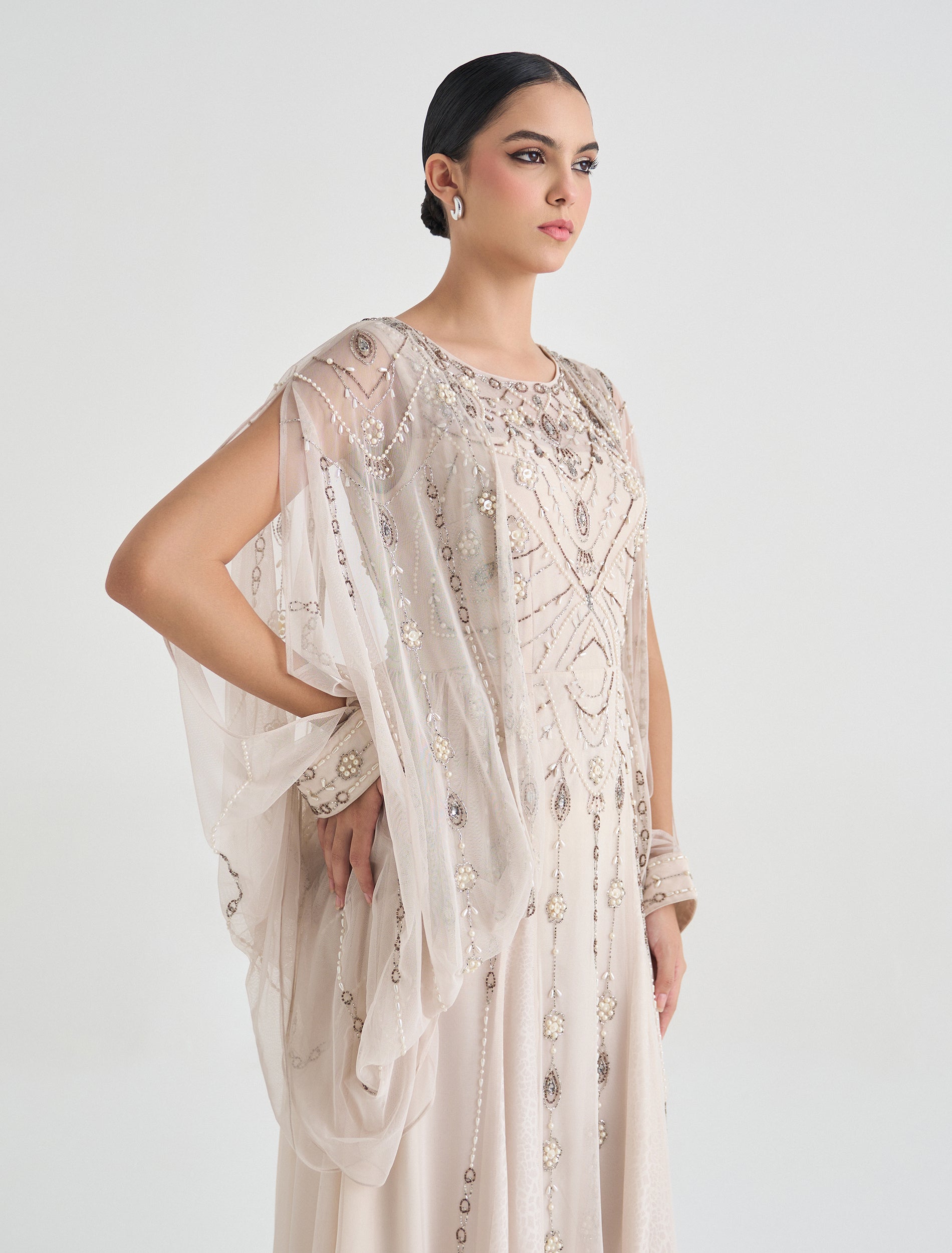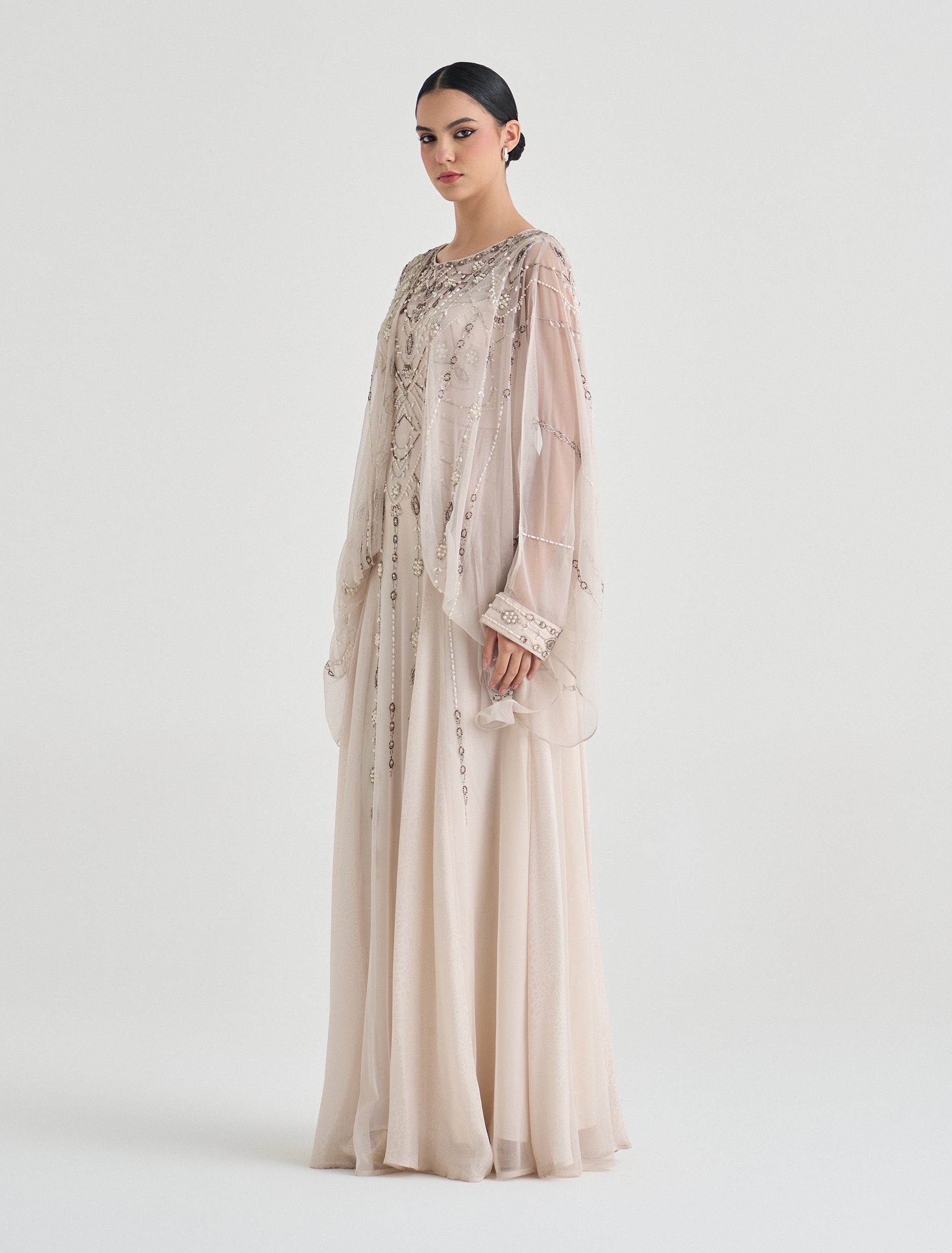هذا الفستان الرائع من ماركة شالكي جزء من المجموعة الجديدة. يمتزج الطابع العصري البسيط مع لمسات جمالية ساحرة.