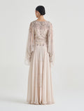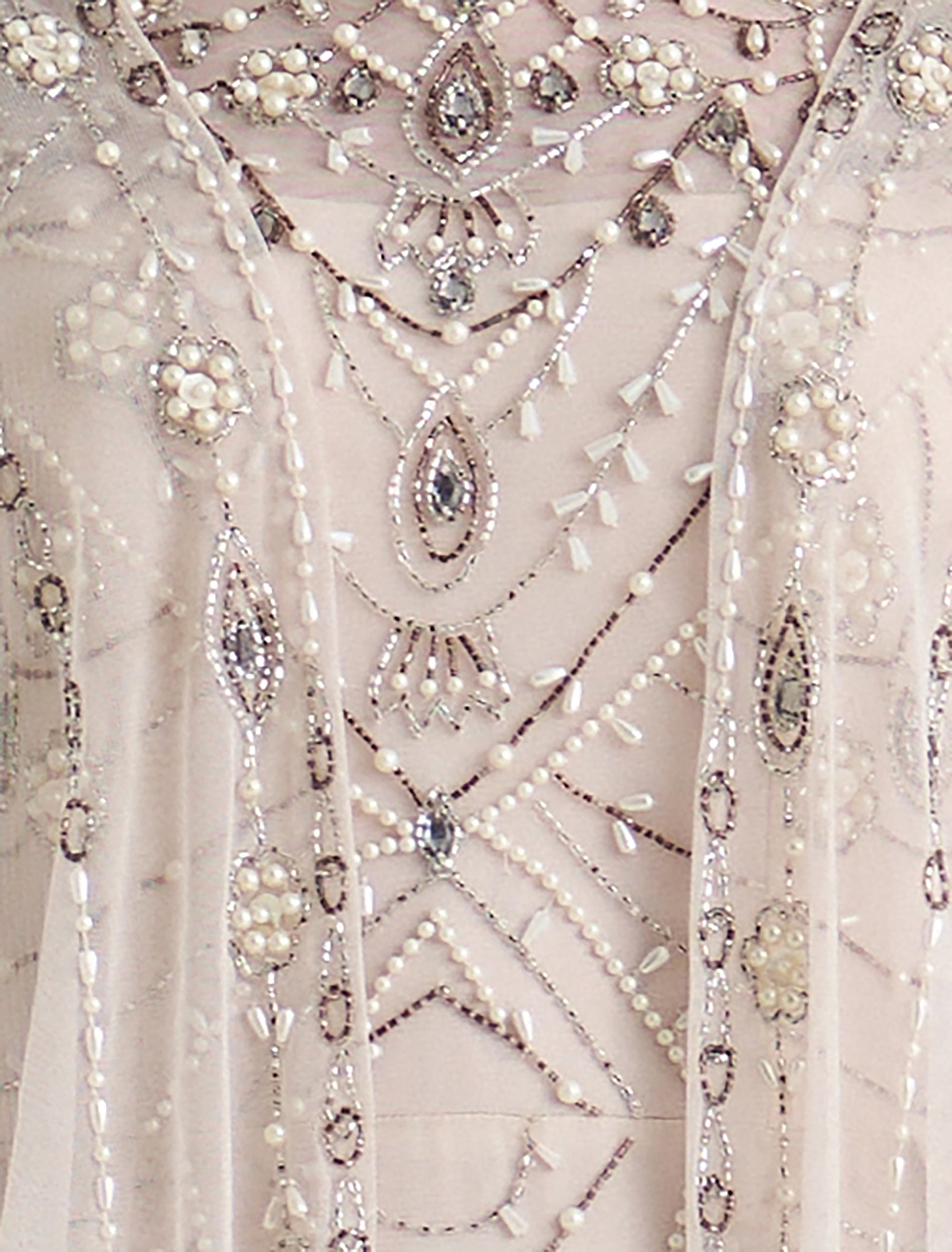 تطريز مميز من الأمام، وفتحة رقبة على شكل حرف V، مصمم للحفلات والمناسبات.