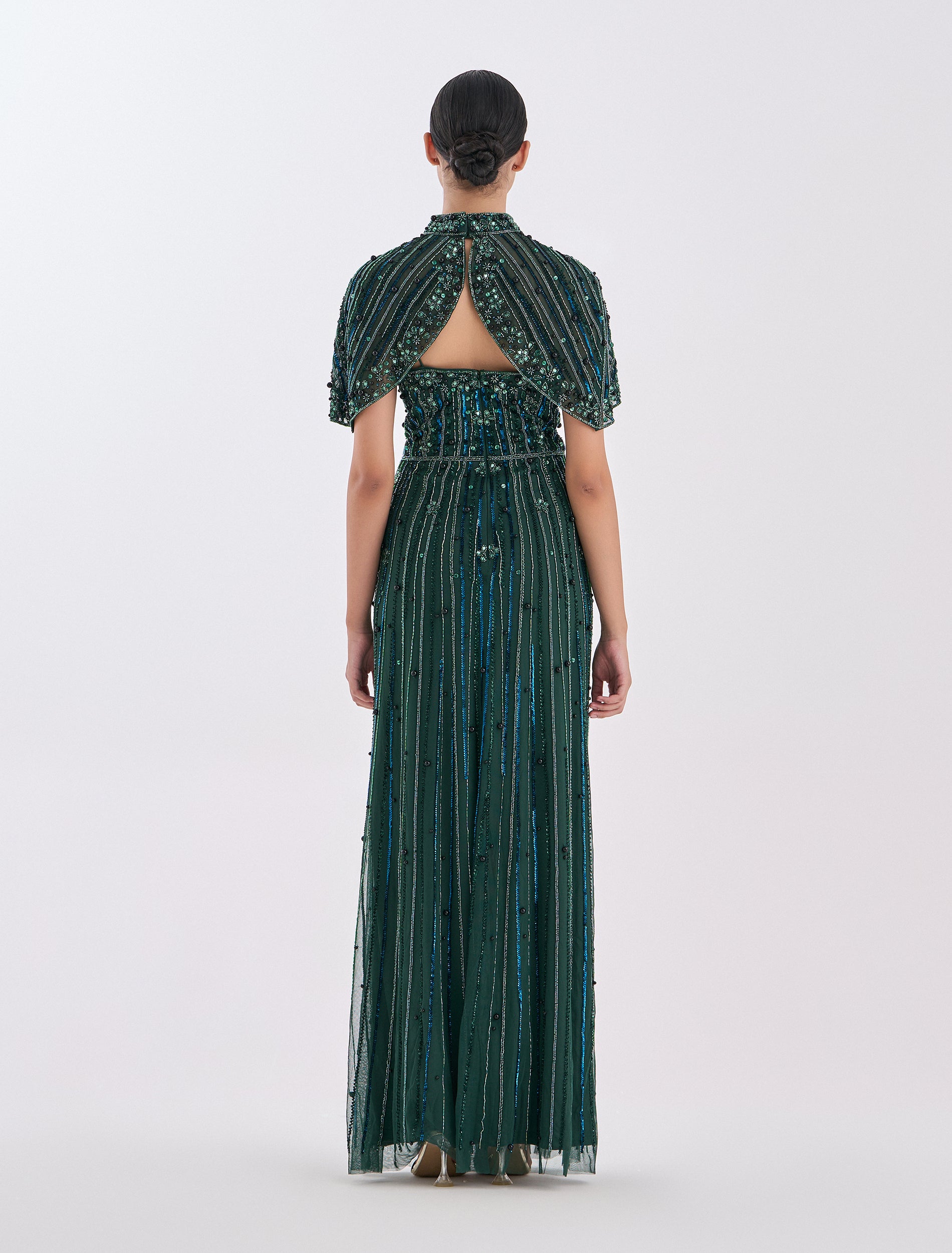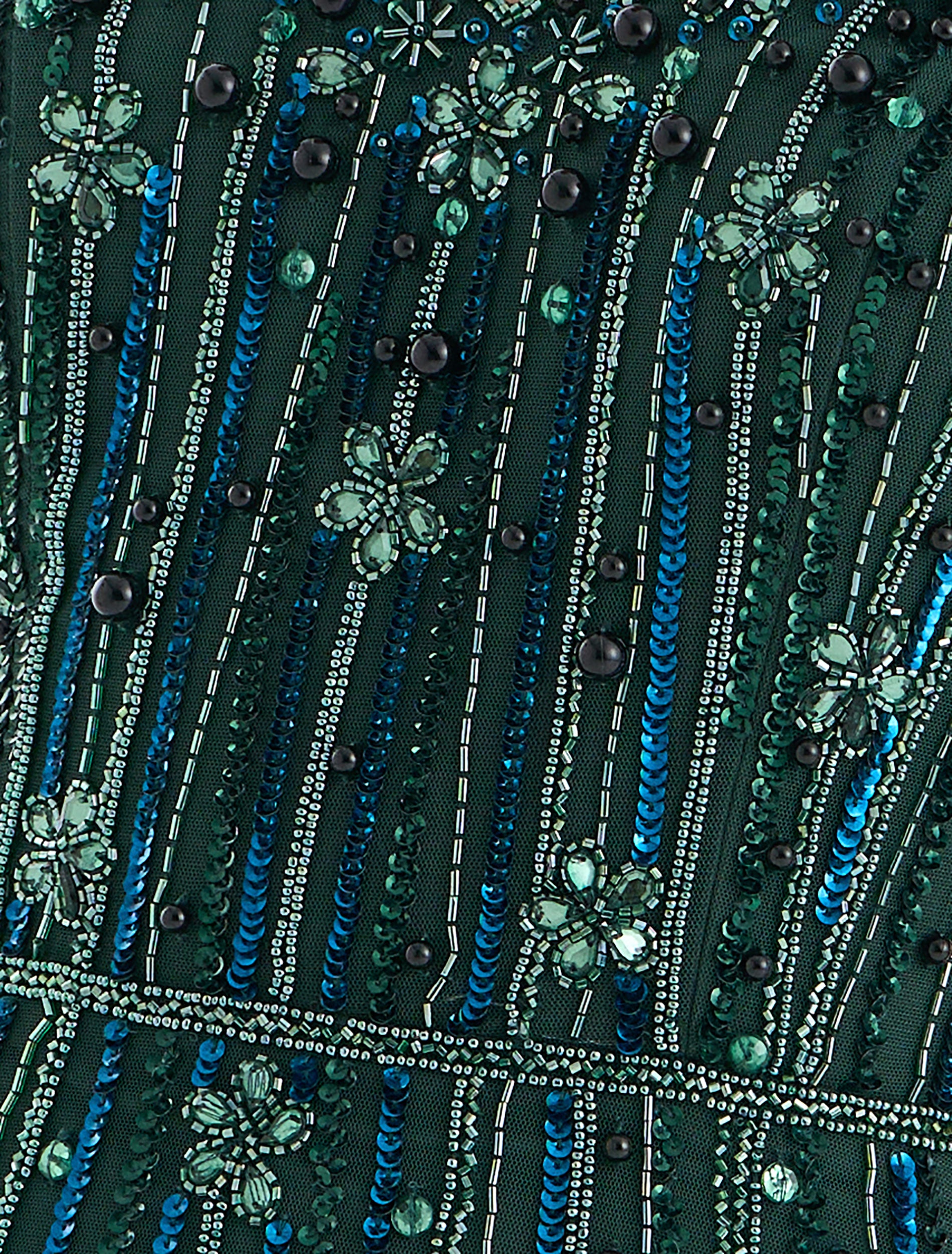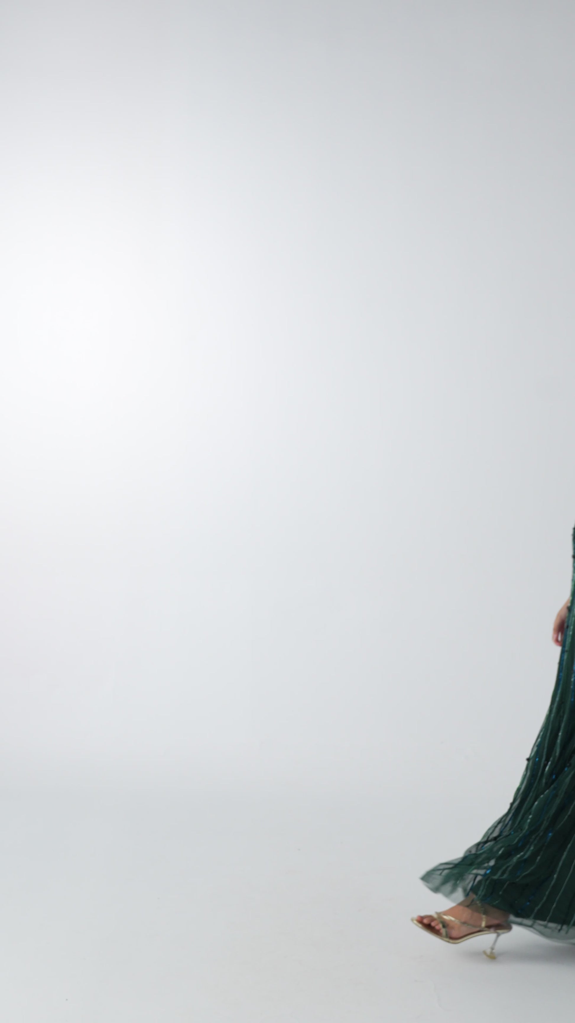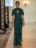 فستان سهرة اخضر غامق بتطريزات لامعة متقنة