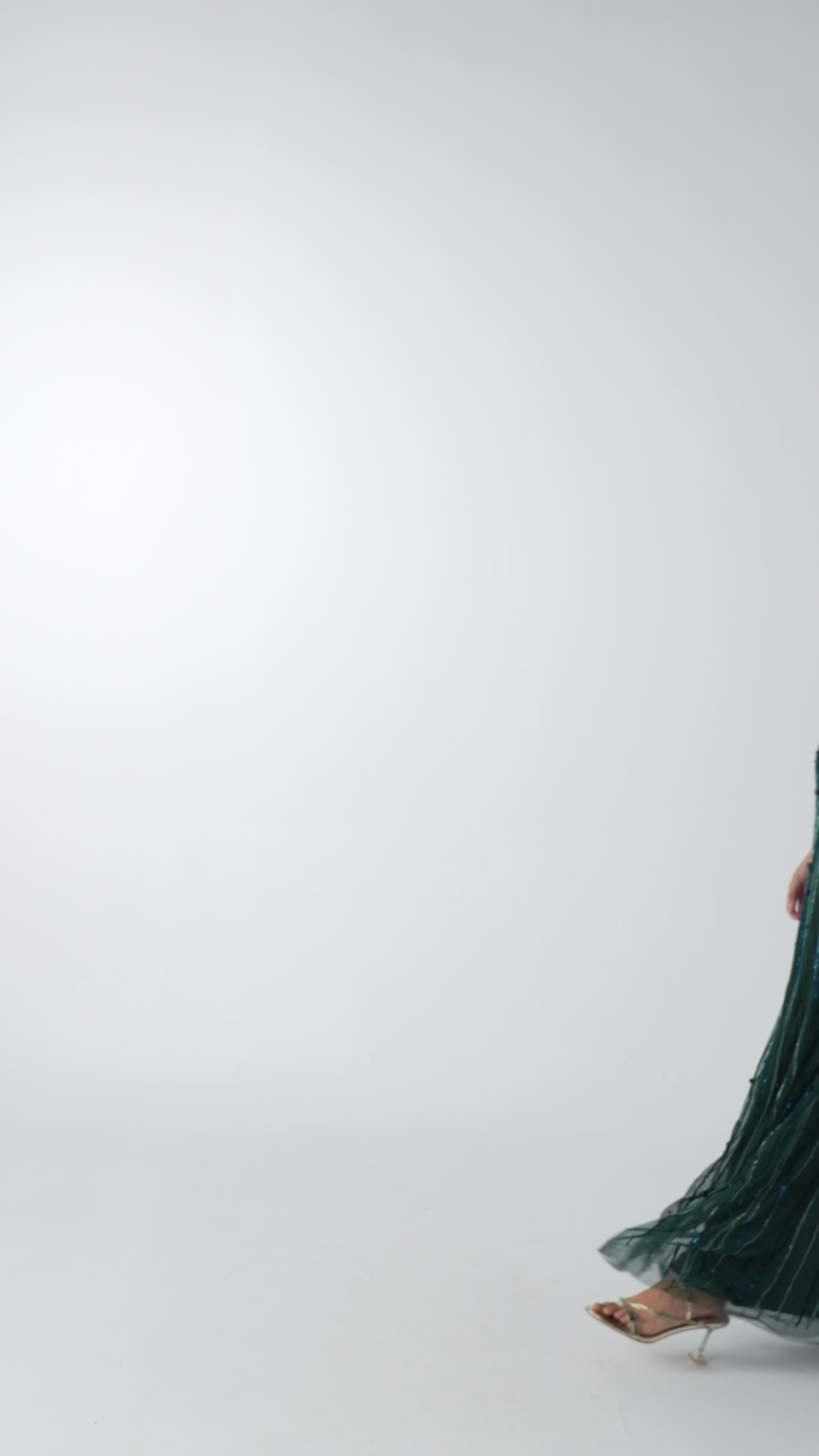 الحذاء: لإكمال تنسيق فستان اخضر غامق ارتدي حذاء كعب عالي ذهبي أو أسود بسيط.