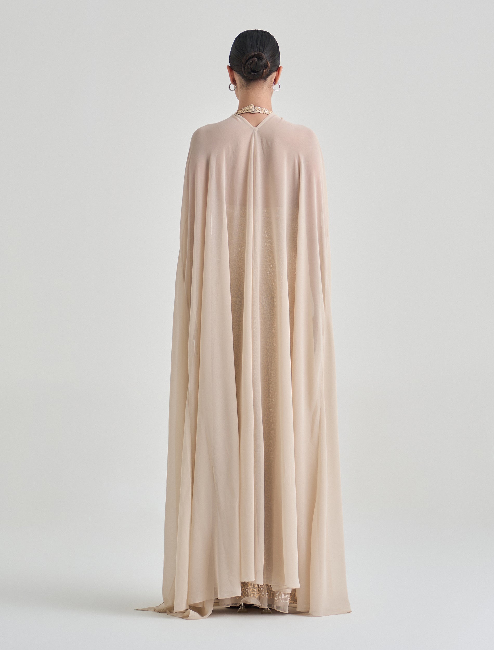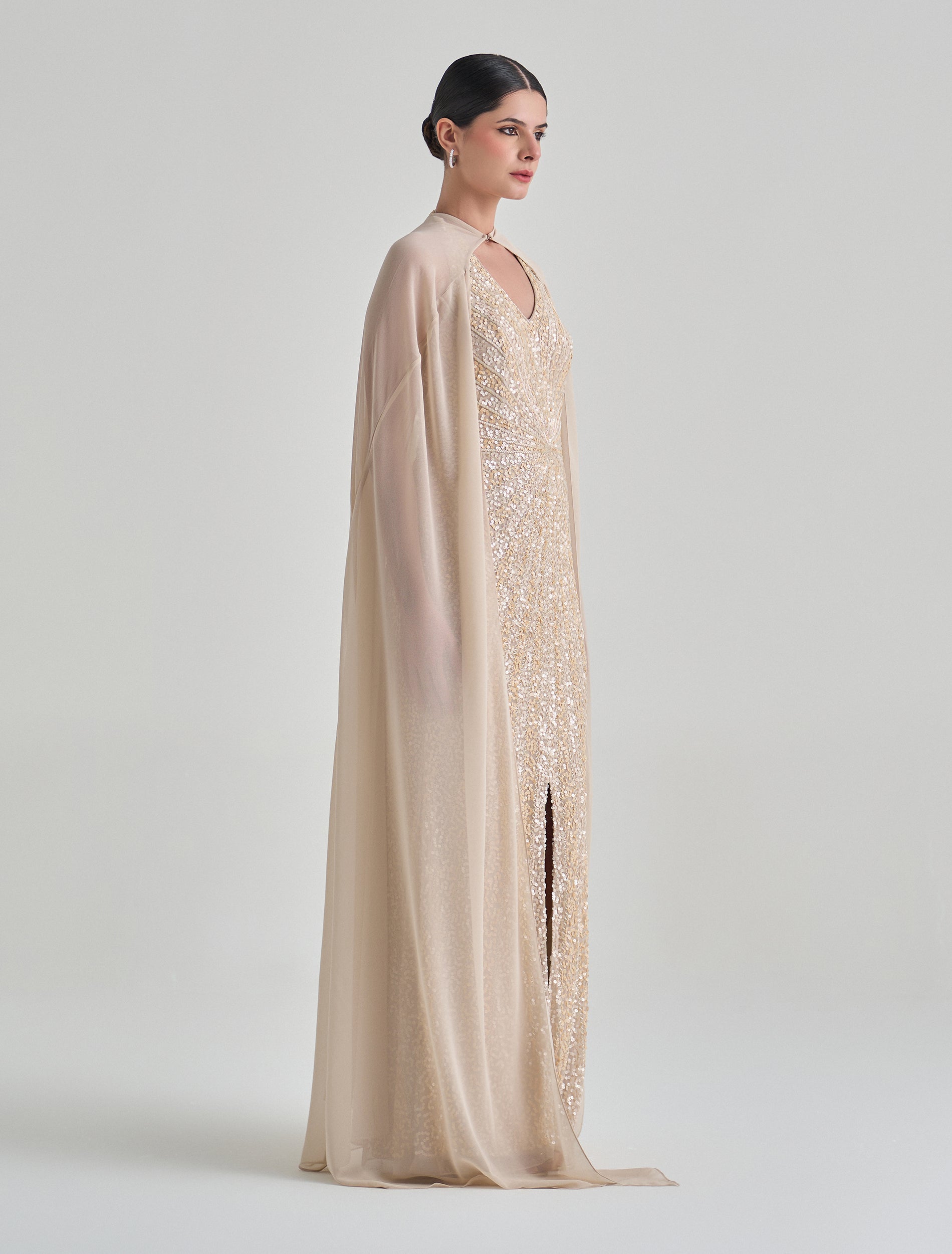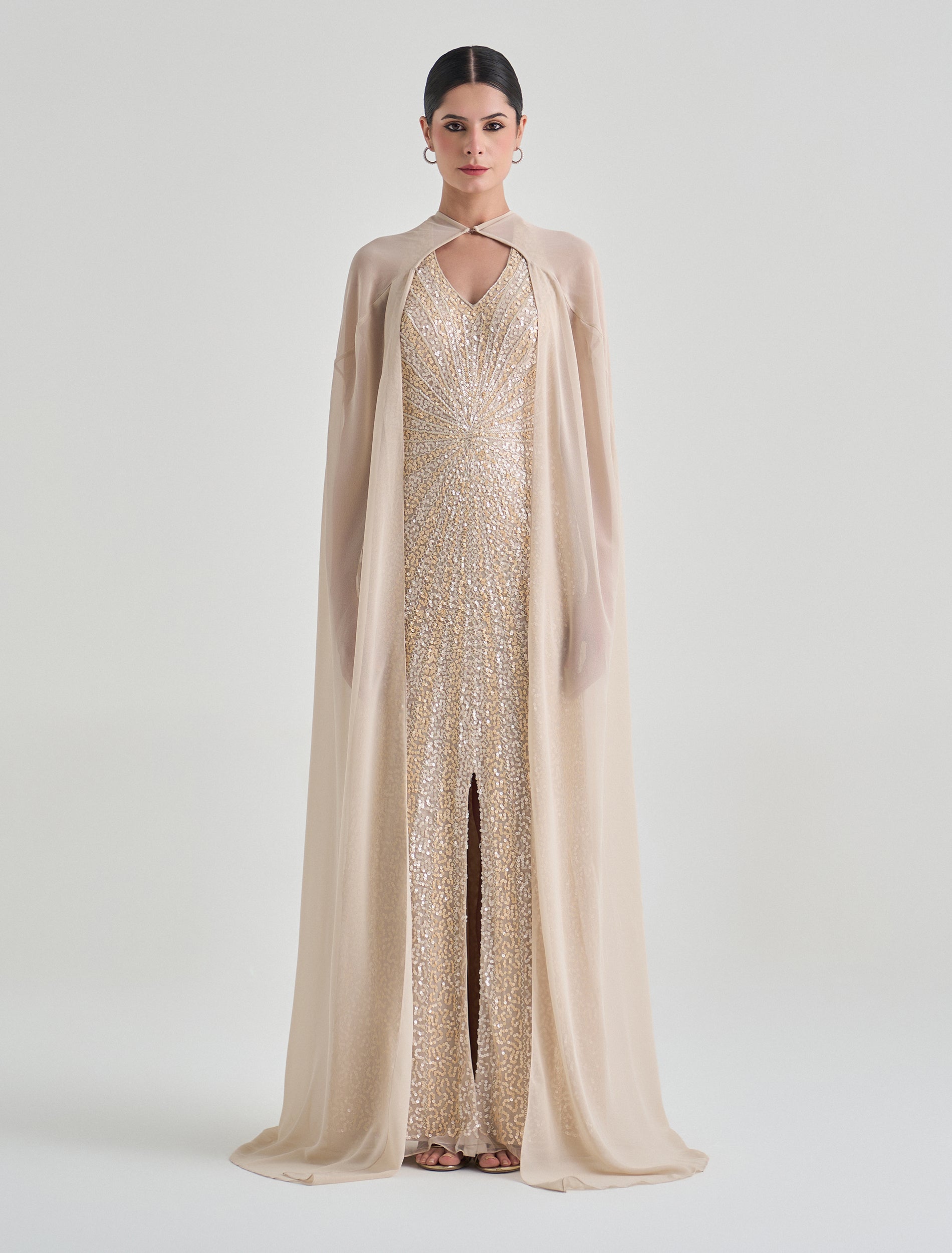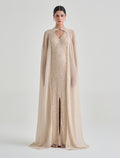 فستان طويل مع كاب تٌل بتصميم ملكي