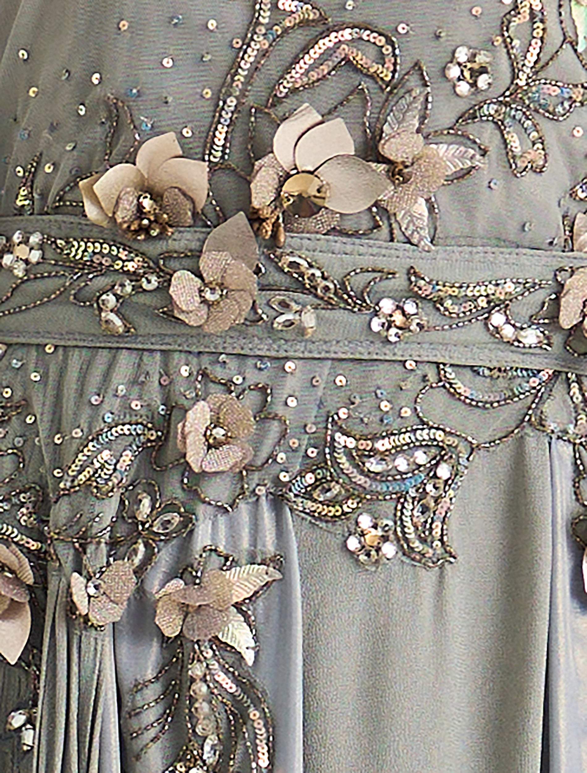 تطريز مميز من الأمام مع رقبة على شكل حرف V، مصمم للحفلات والمناسبات.