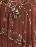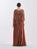 فستان بني مخمل طويل بتطريز يدوي فاخر