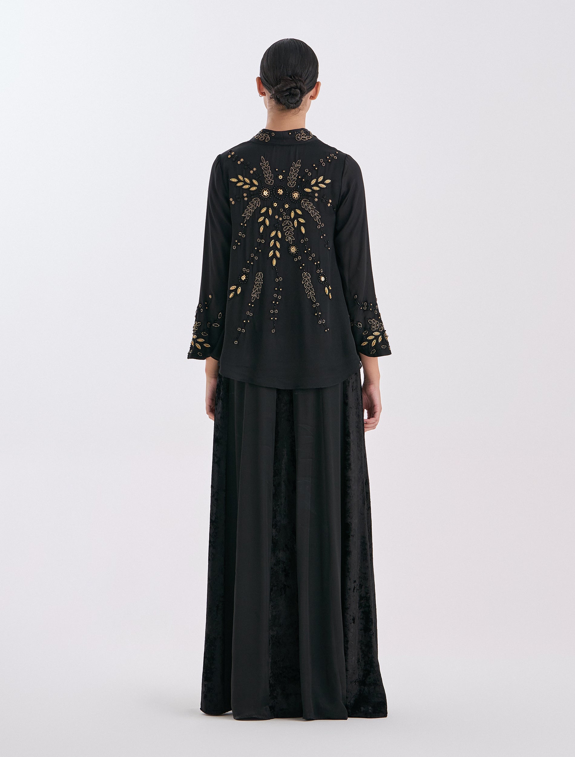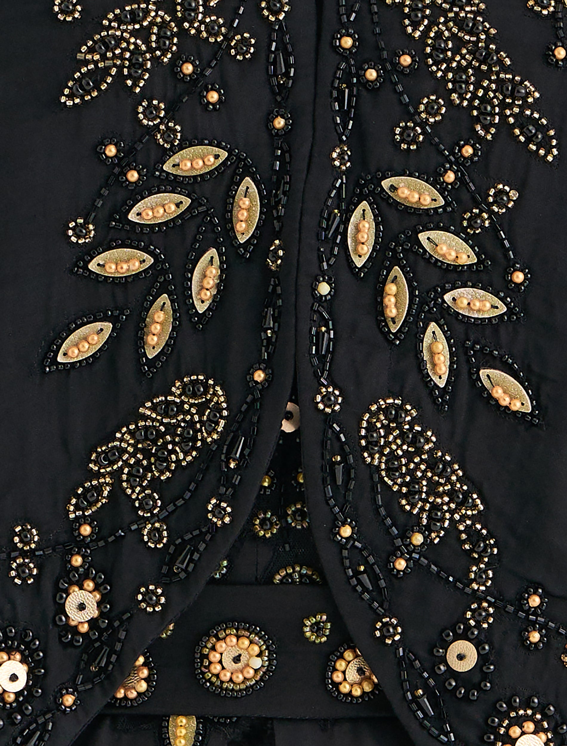 - التطريز: تطريز ذهبي مزخرف بأزهار.