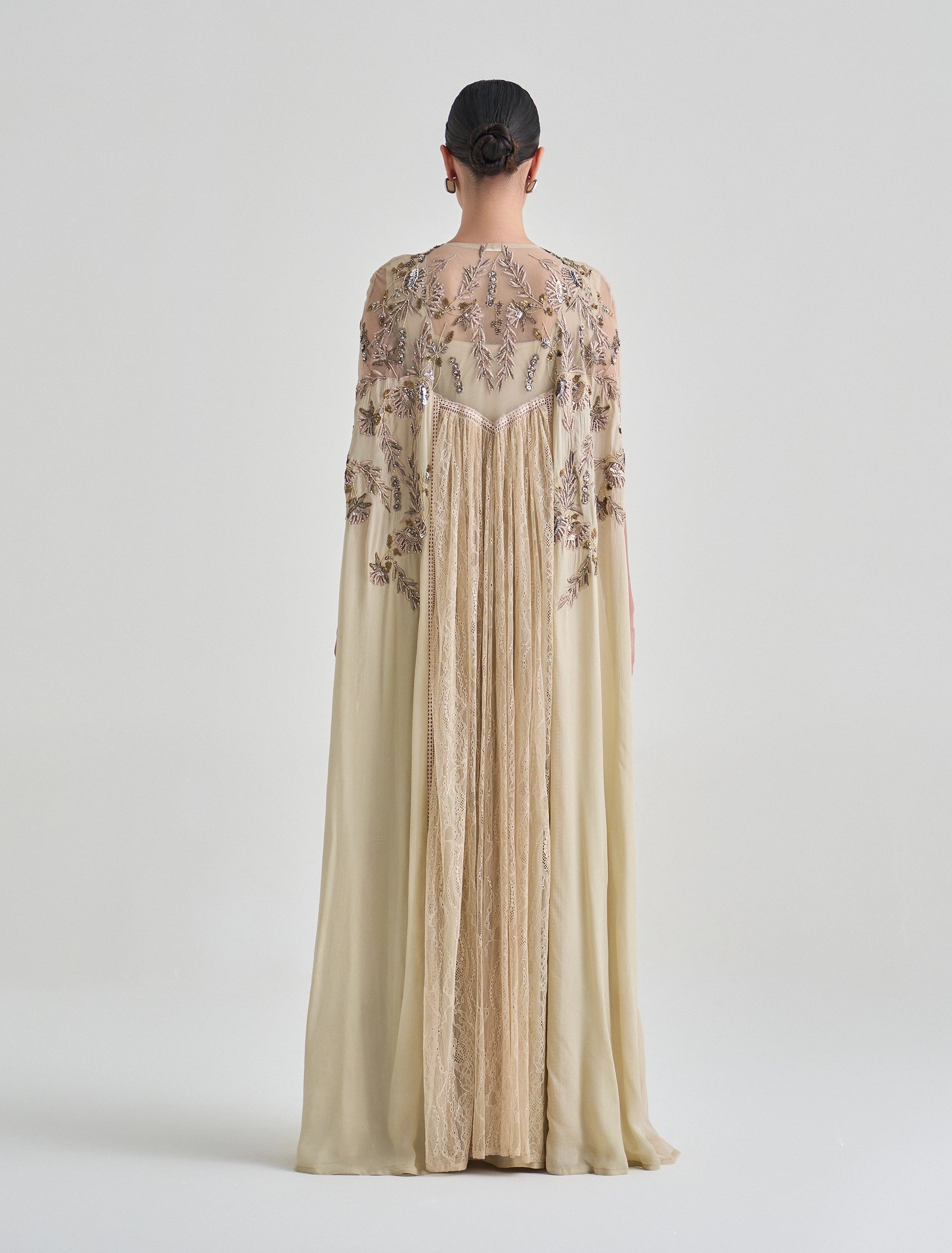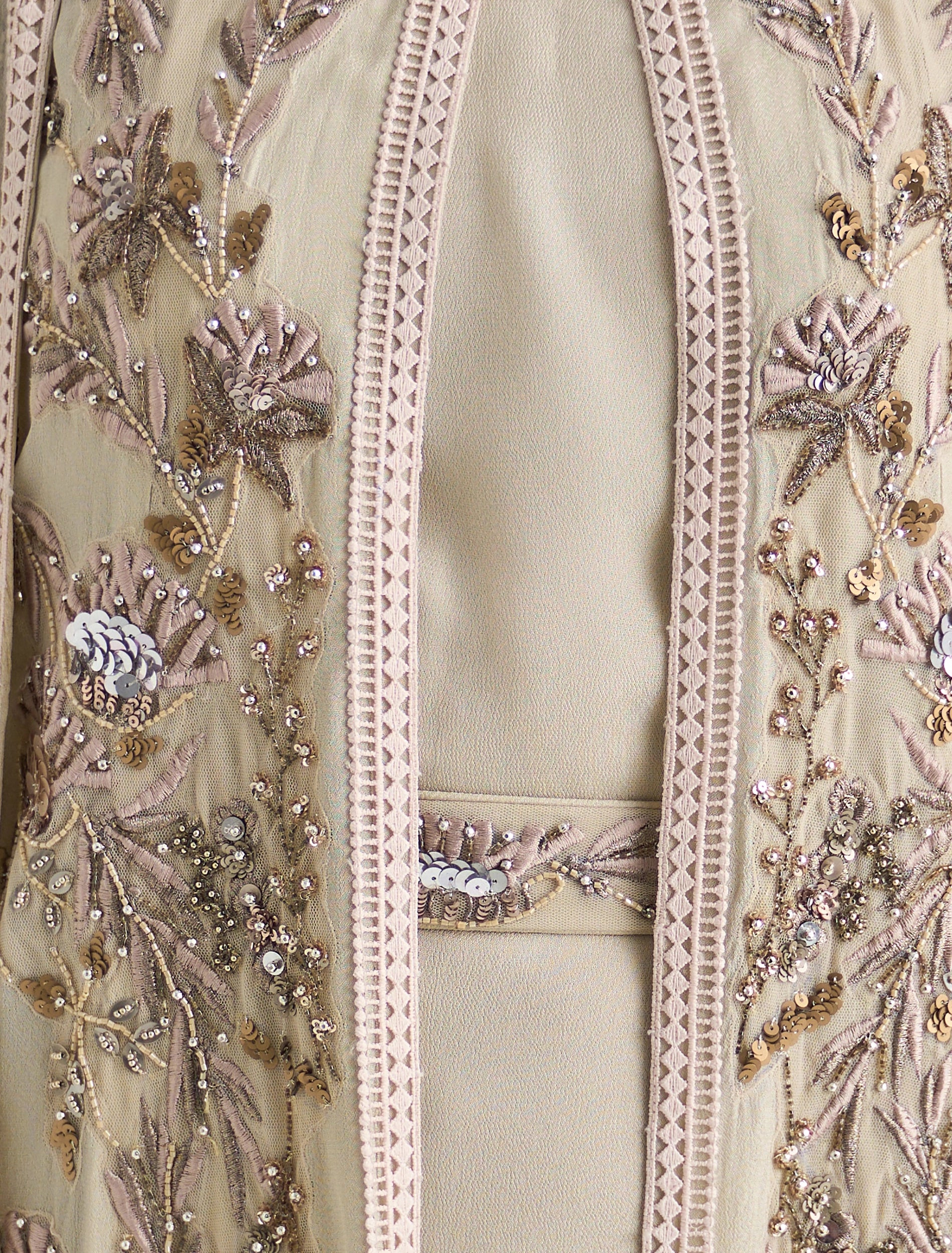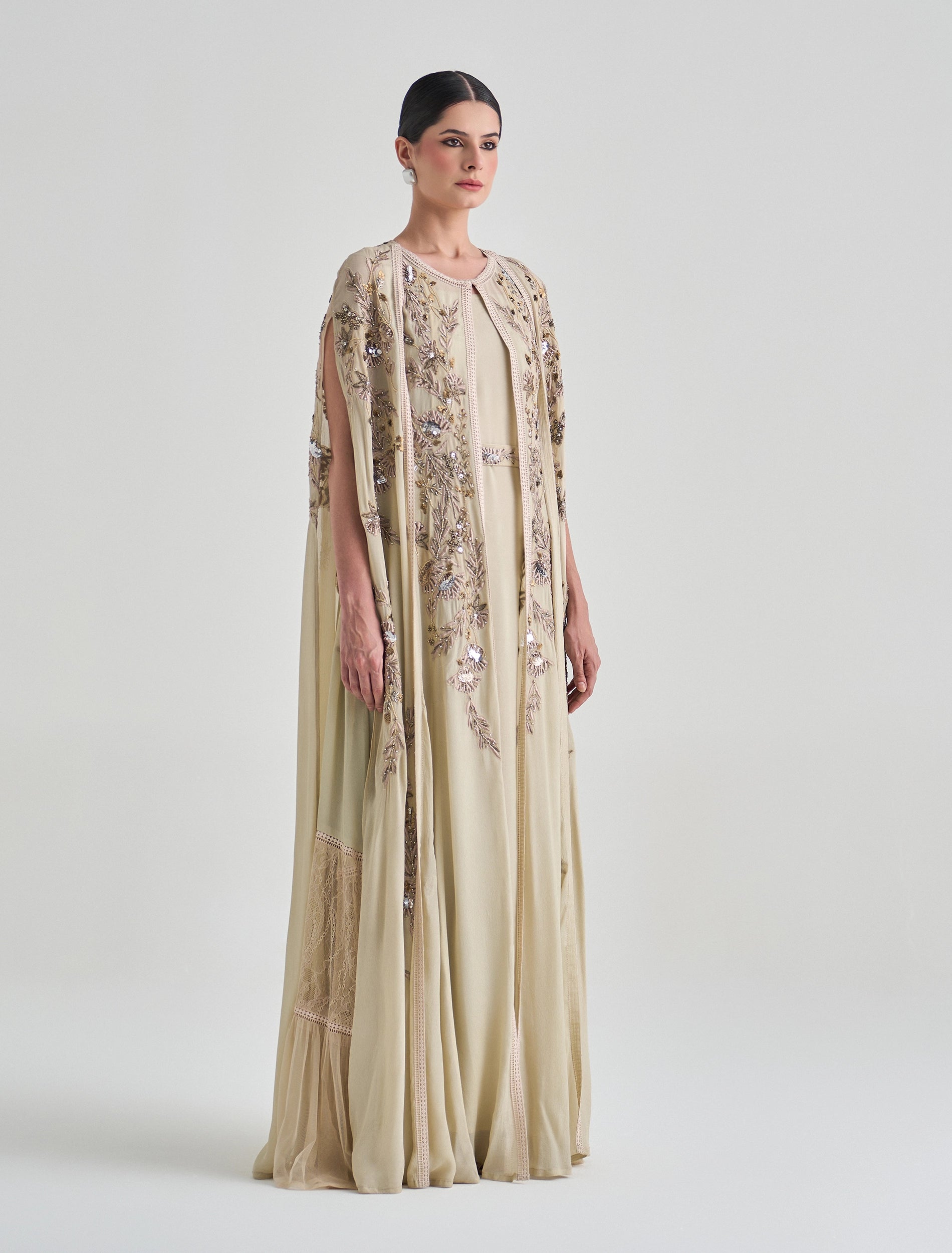 فستان أنيق مطرز يدويًا مع طبقة تل ناعمة