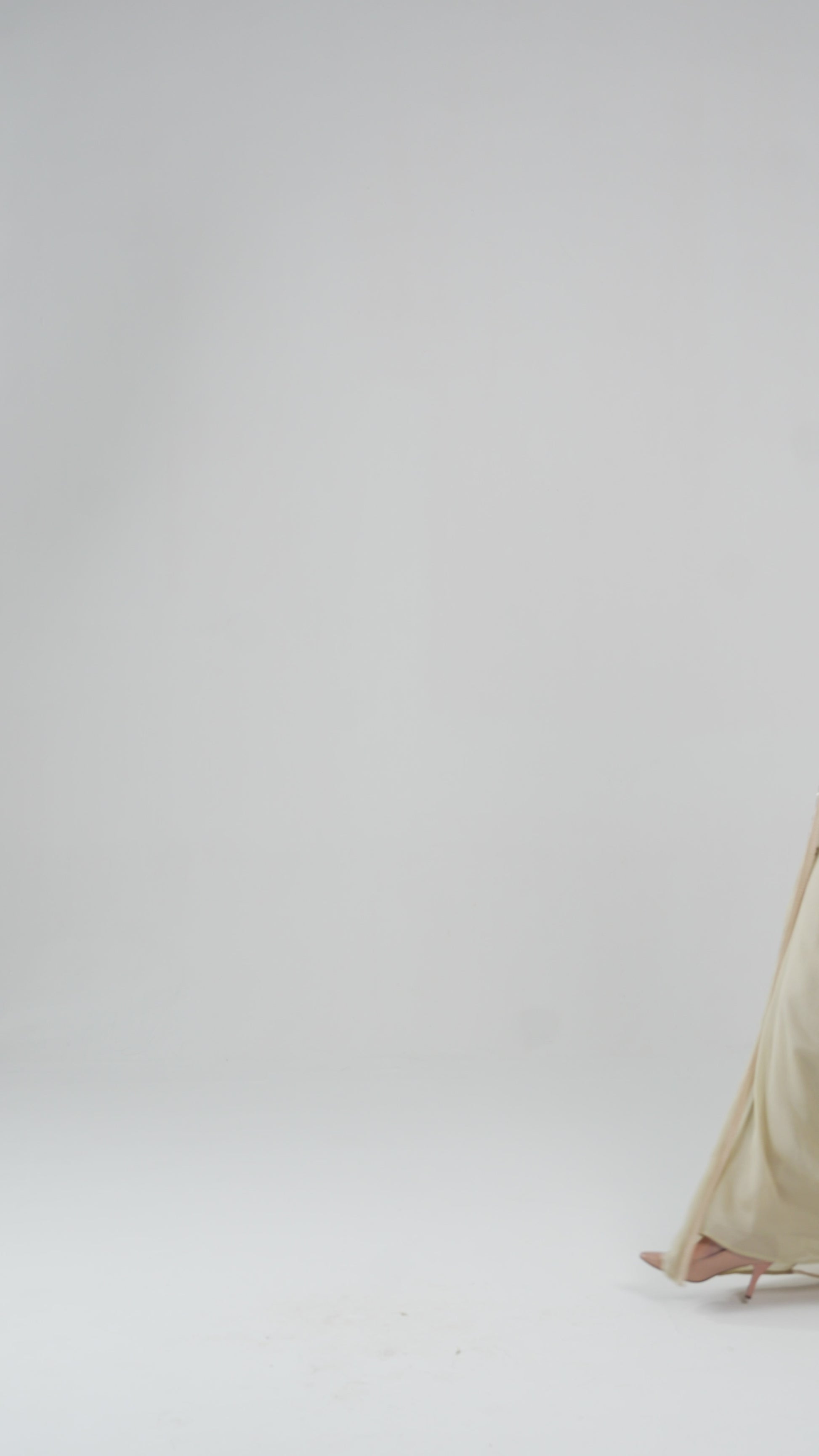 نسقيه مع مجوهرات ذهبية وصندل لامع لإطلالة فاخرة.