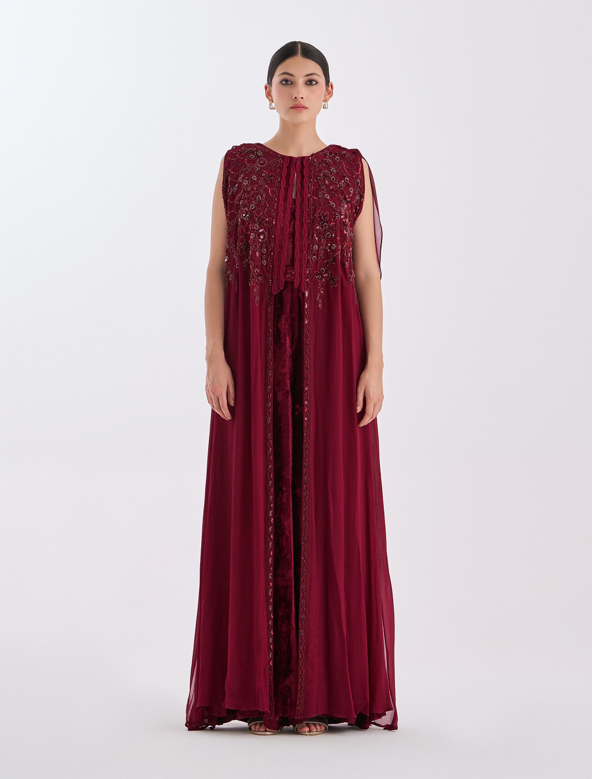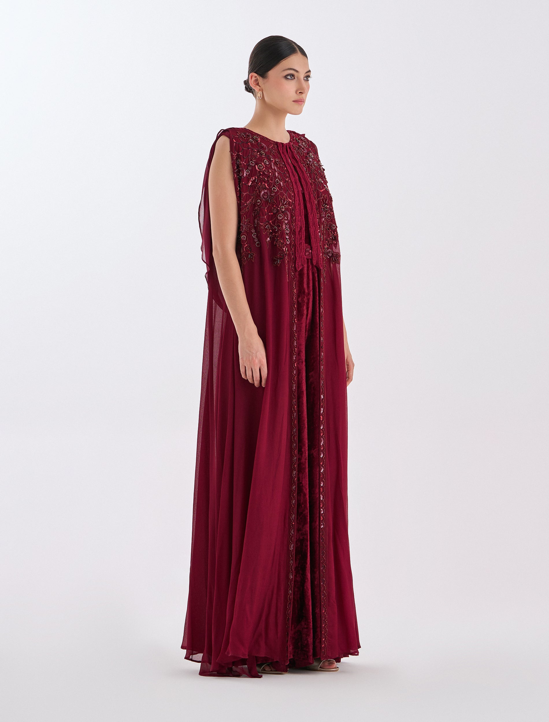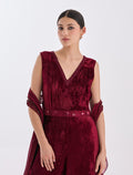 تطريز مميز من الأمام مع رقبة على شكل حرف V، مصمم للحفلات والمناسبات.