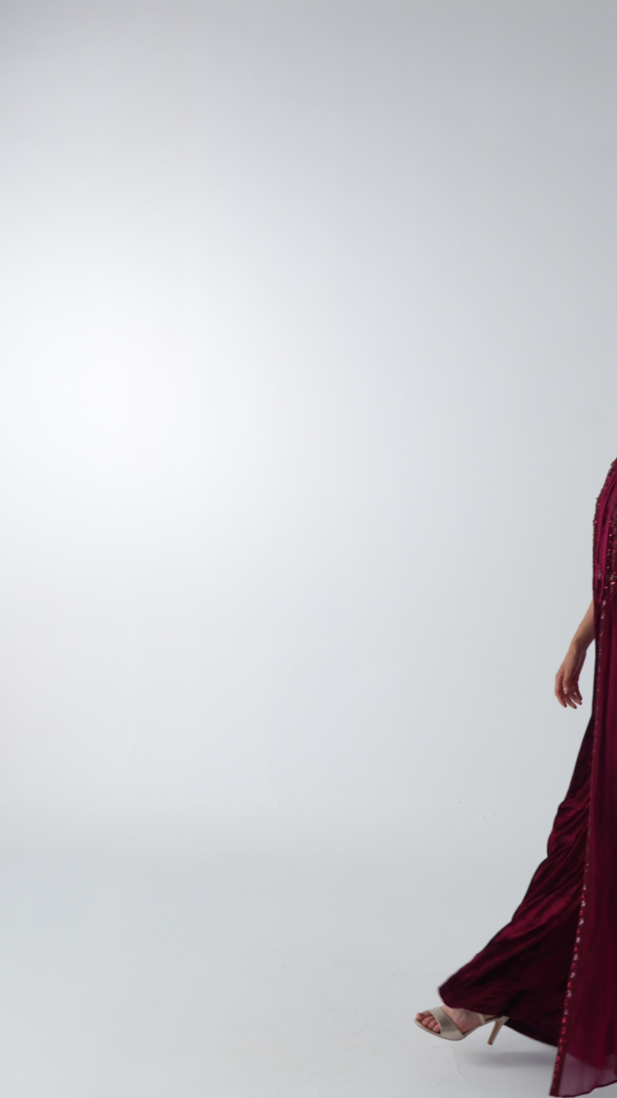 نسقيه مع مجوهرات ذهبية وصندل لامع لإطلالة فاخرة.