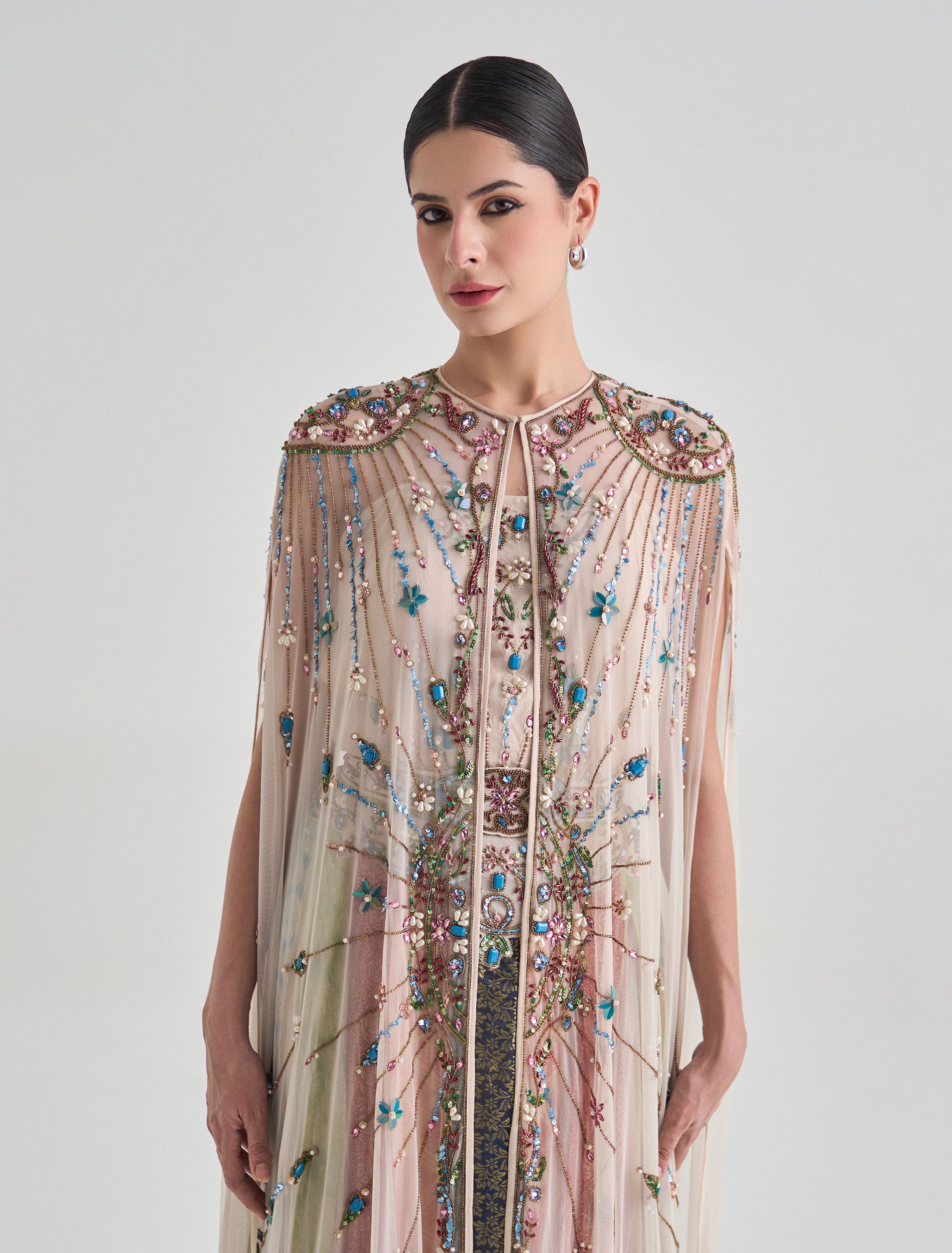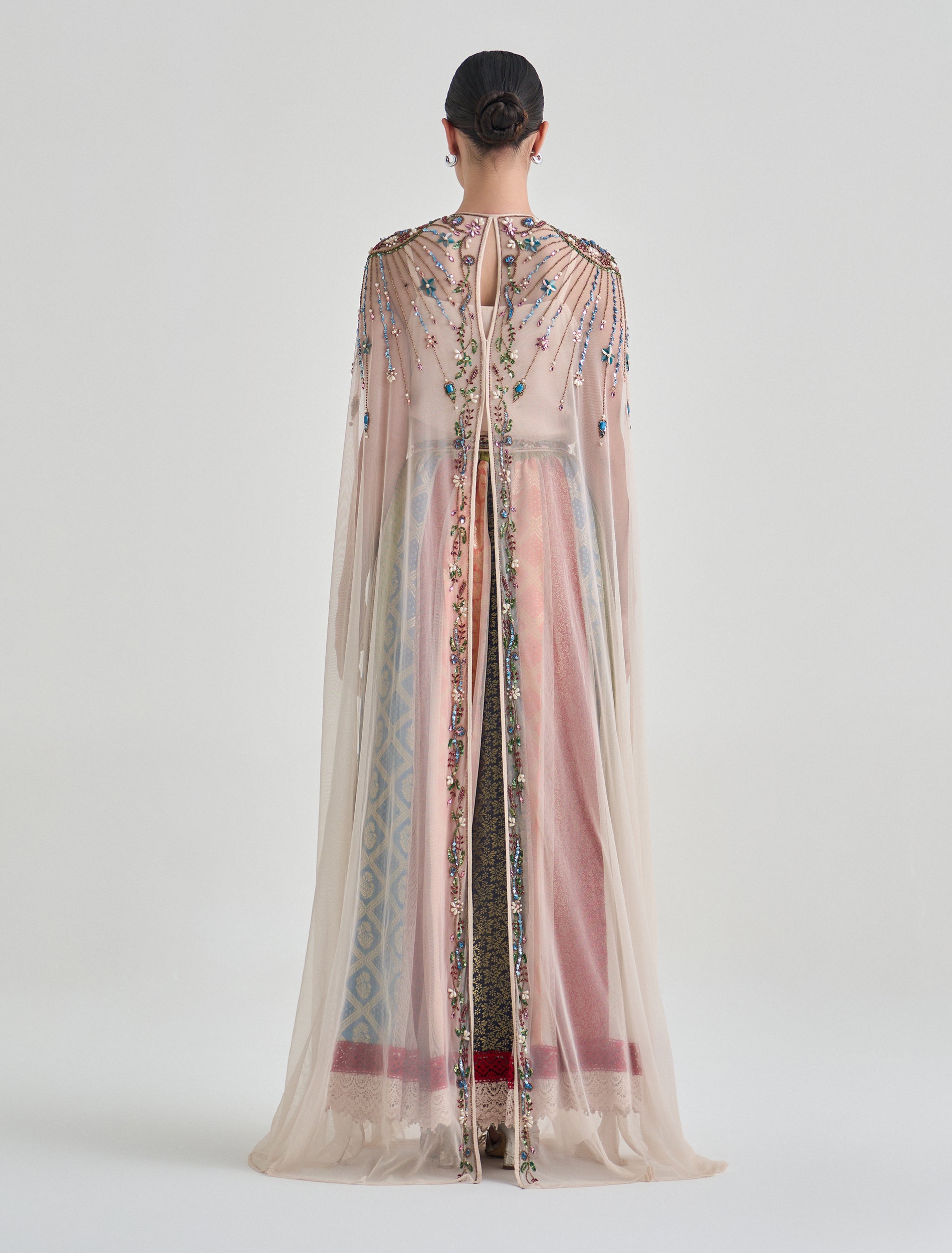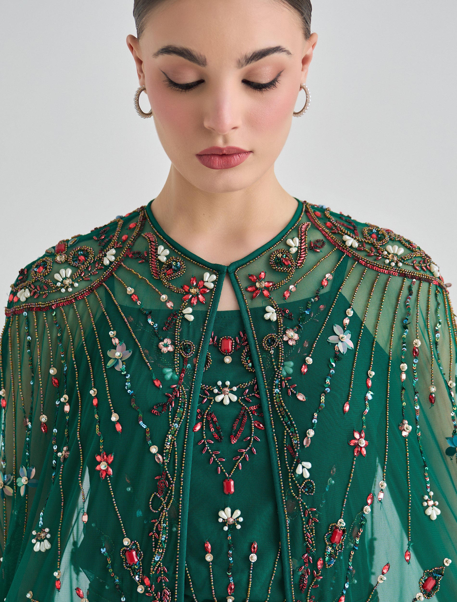 طقم مطرز يدويا من تنورة وبلورة مع كاب