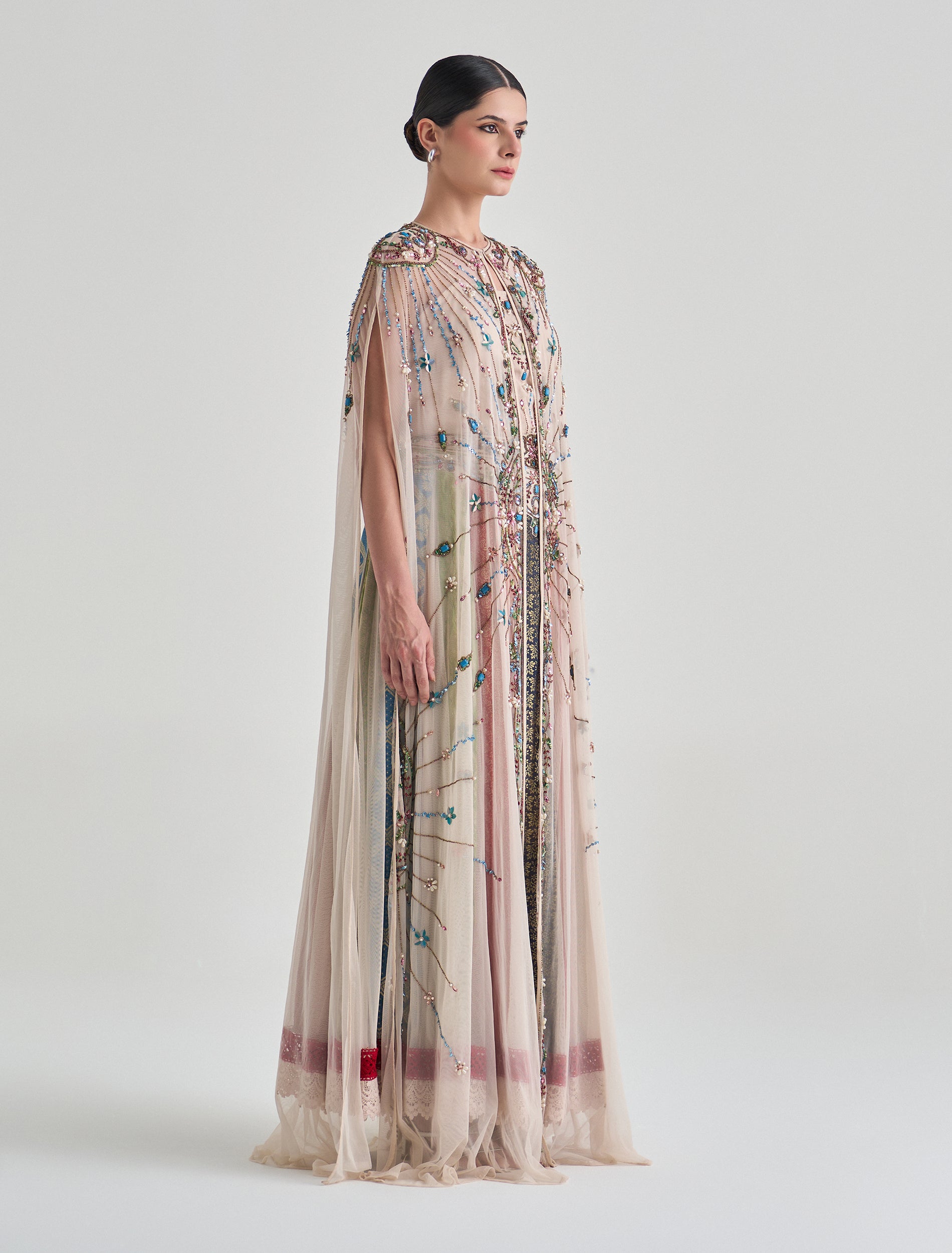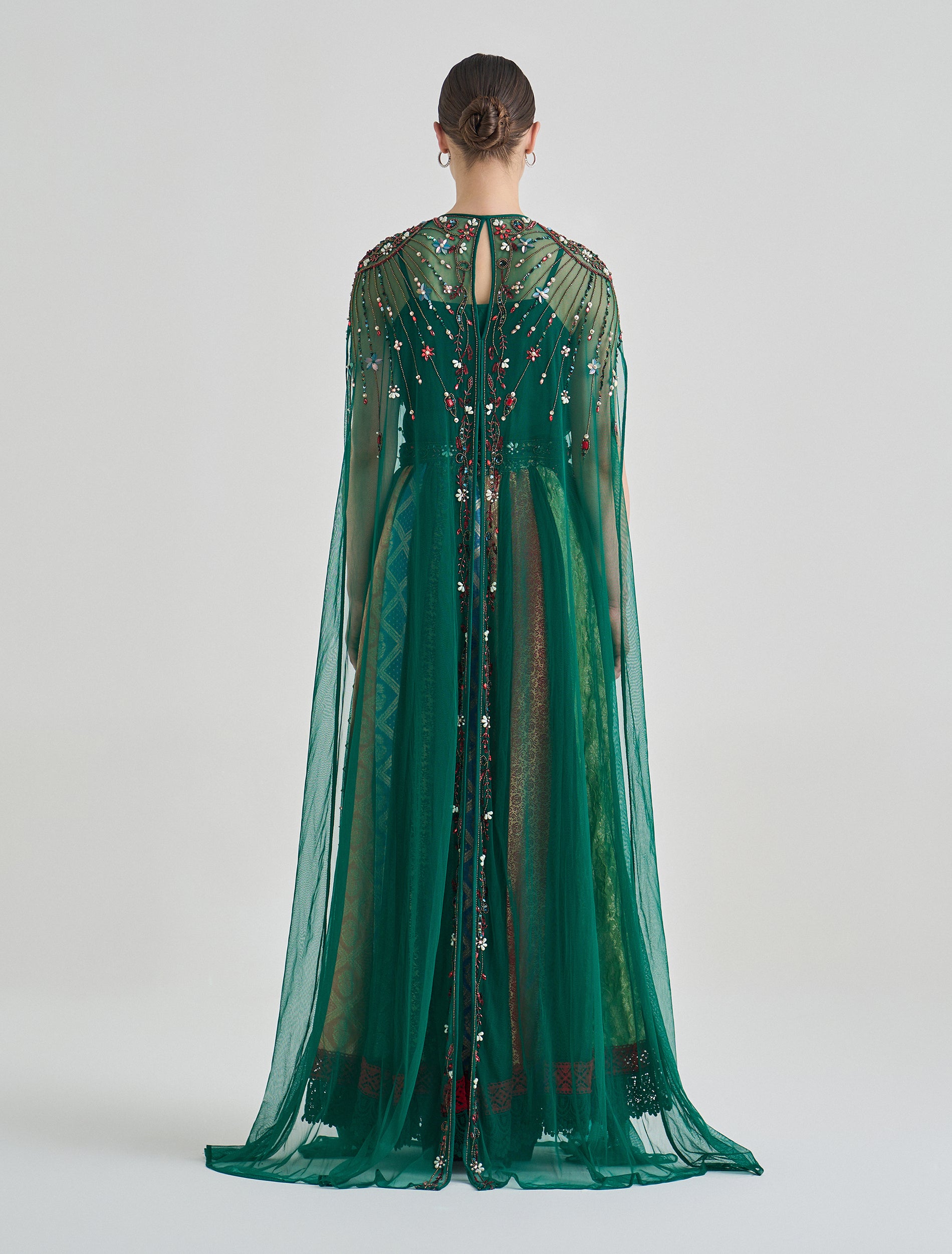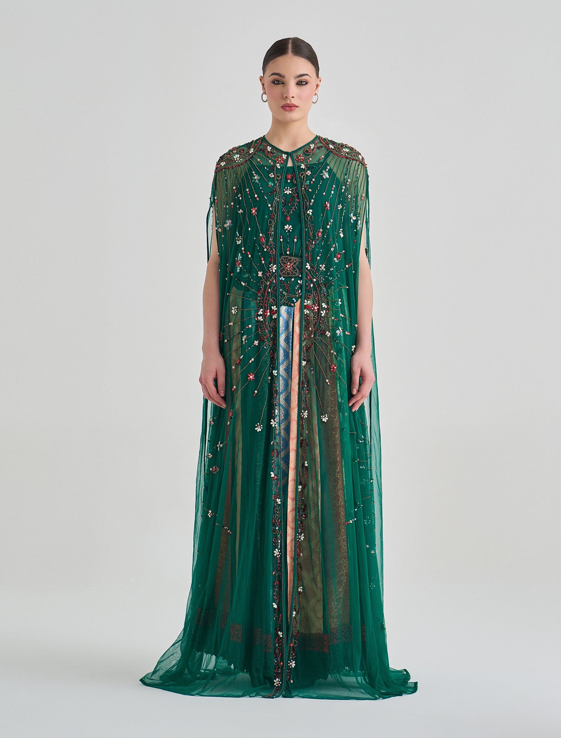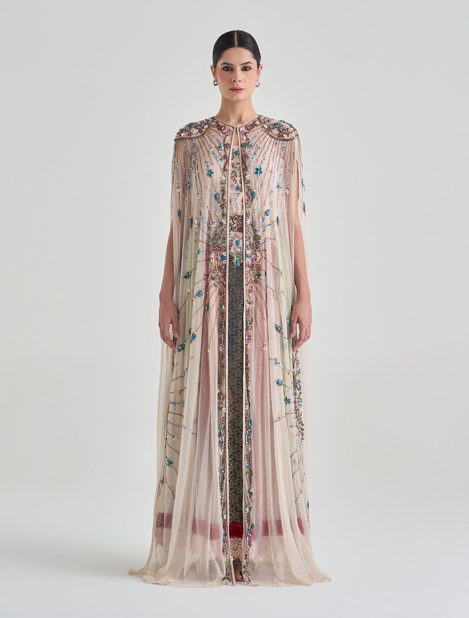 طقم مطرز يدويا من تنورة وبلورة مع كاب