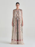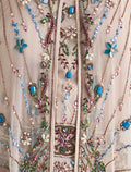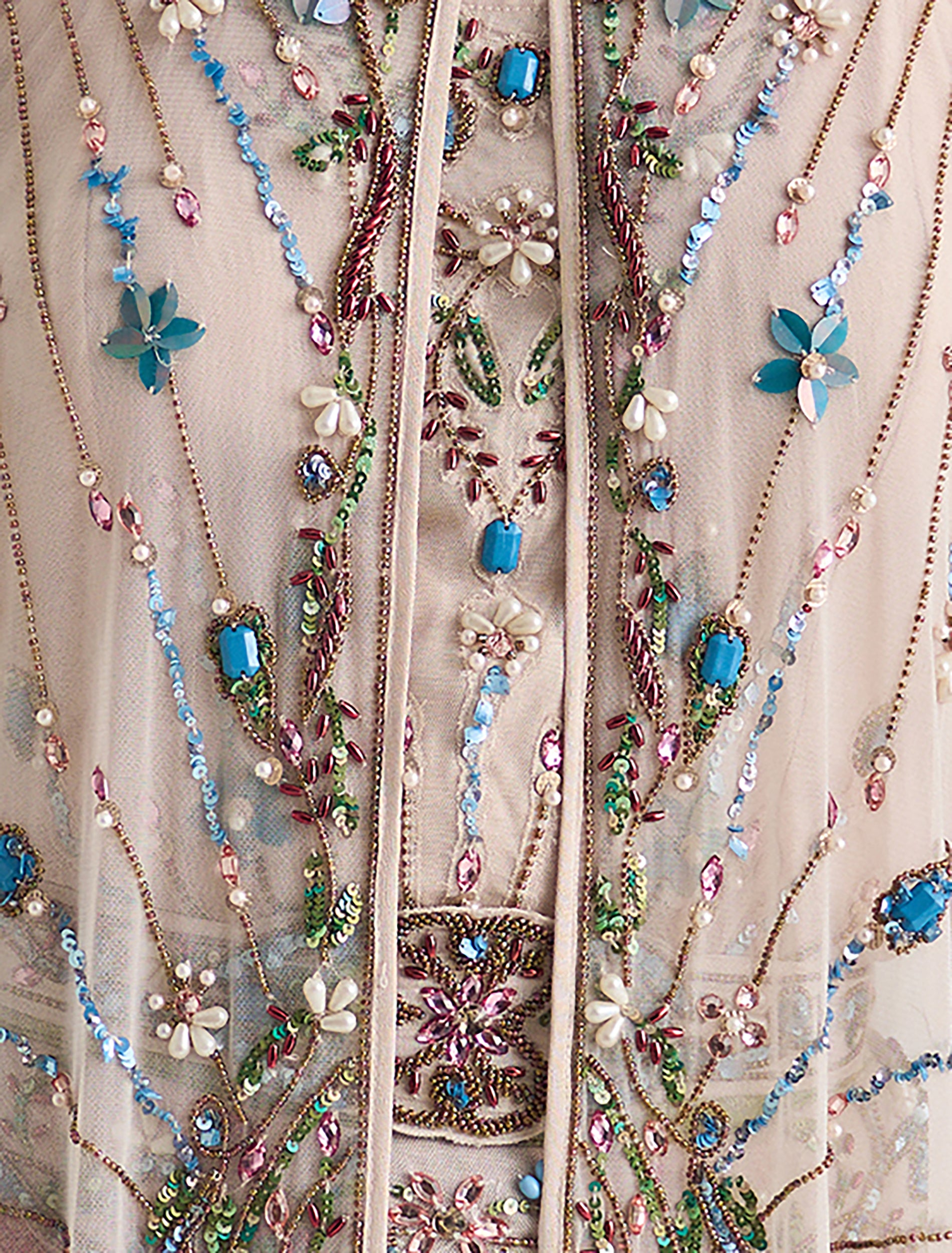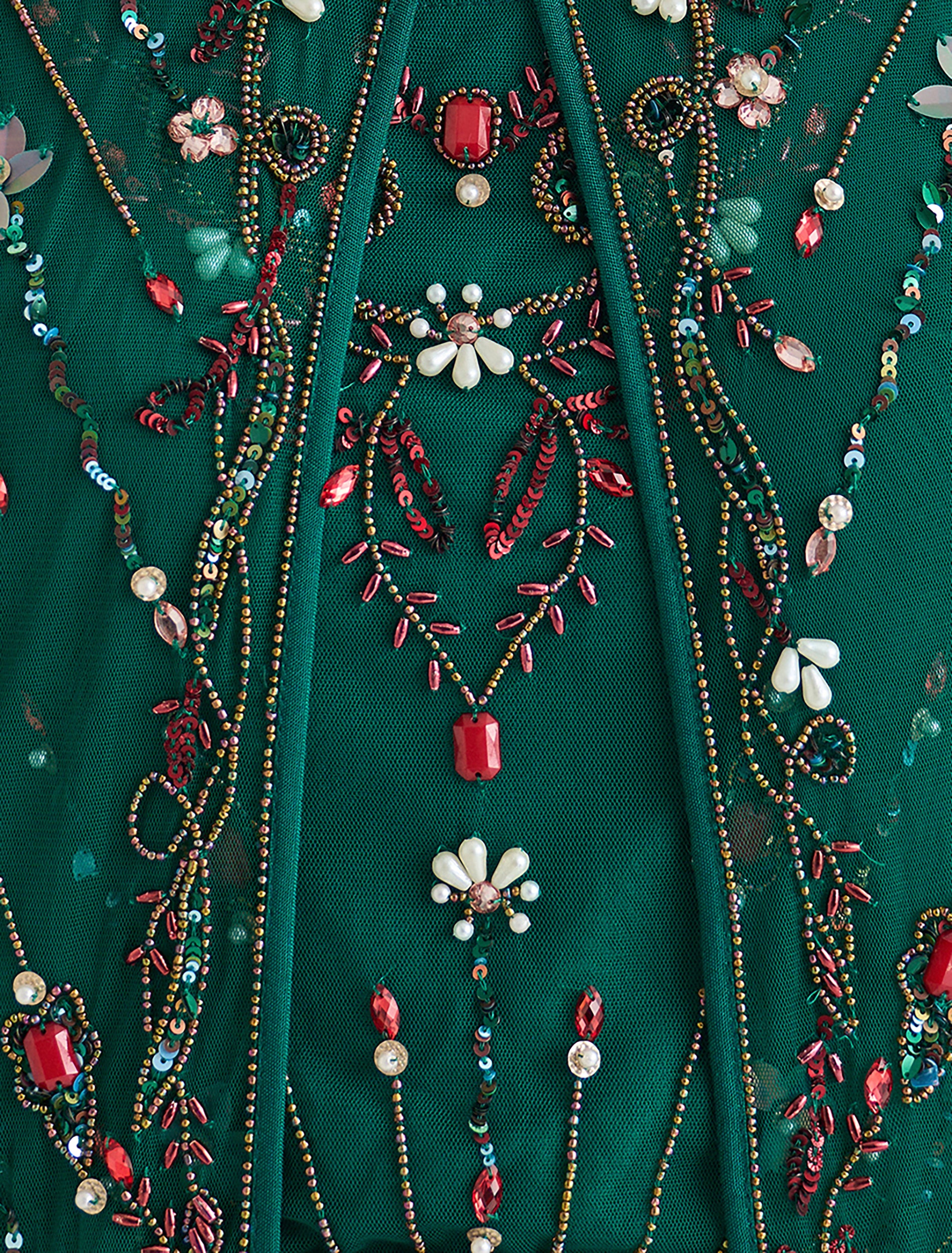 تطريز مميز على الجهة الأمامية مع ياقة دائرية، مصمم للحفلات والمناسبات.