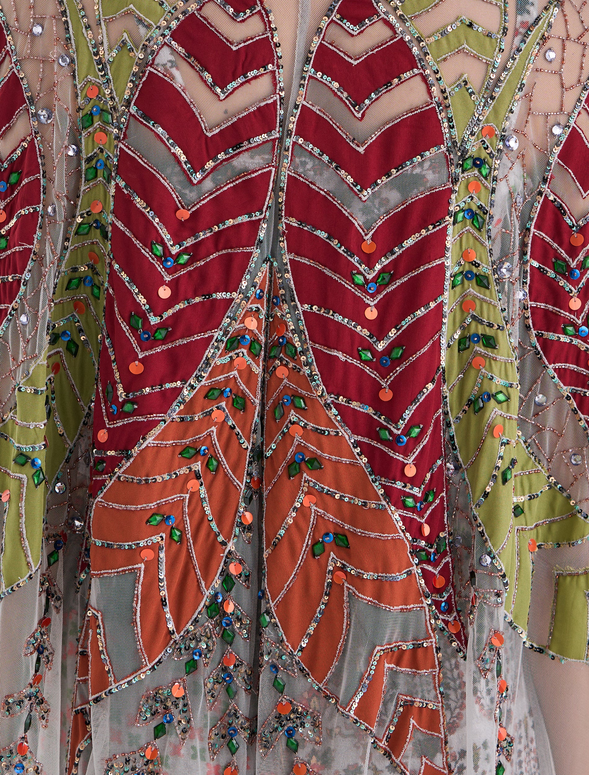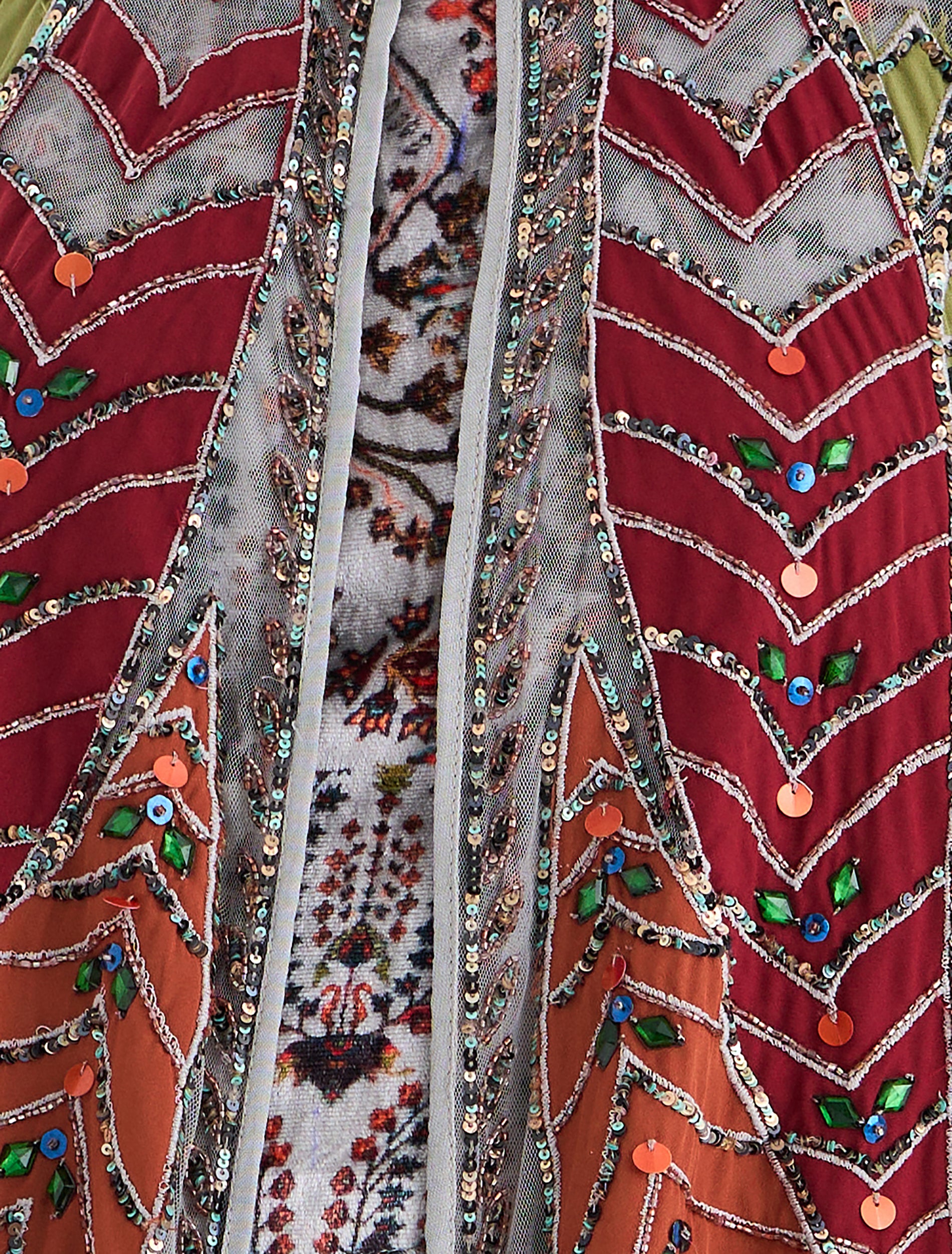 تطريز مميز من الأمام مع رقبة على شكل حرف V، مصمم للحفلات والمناسبات.