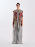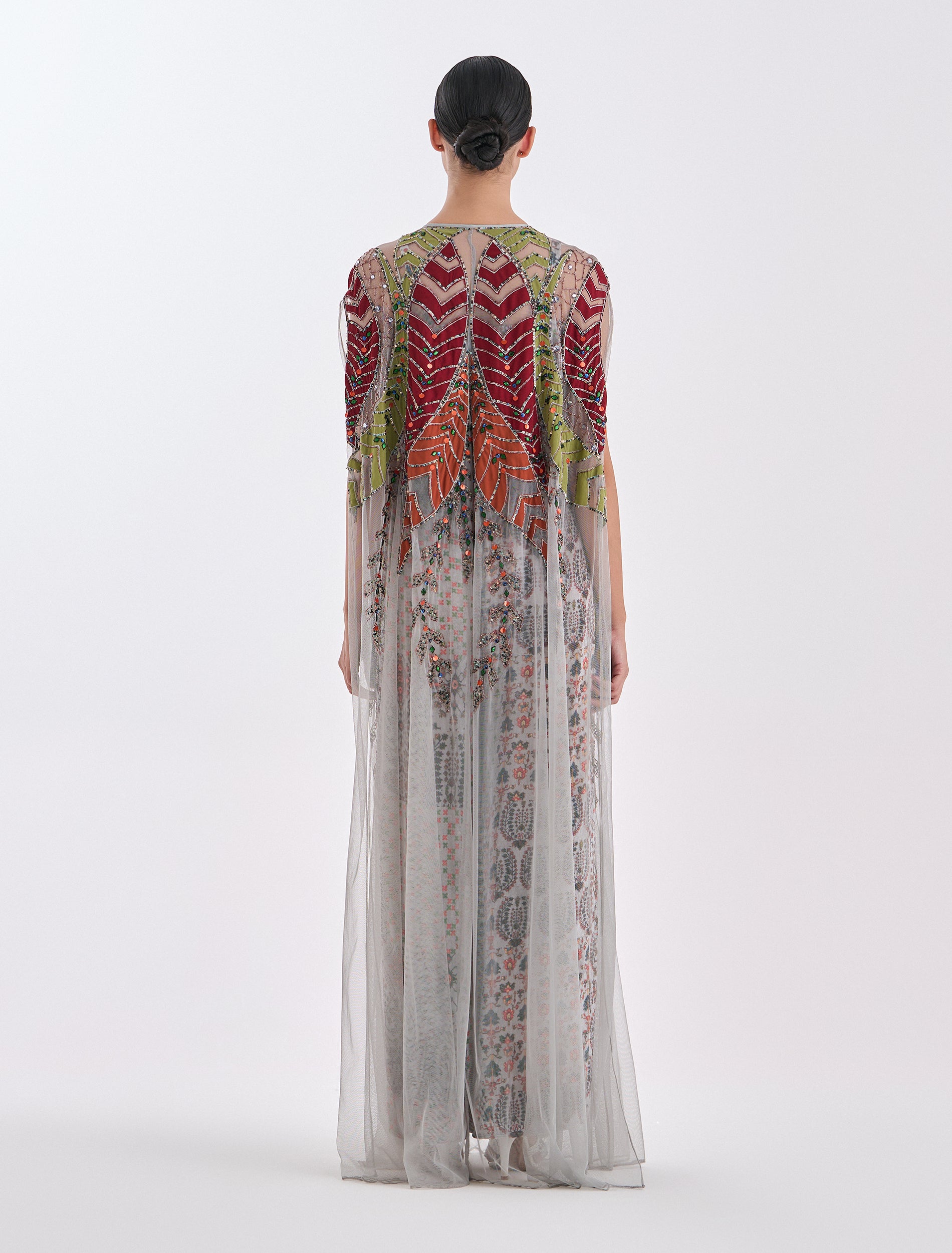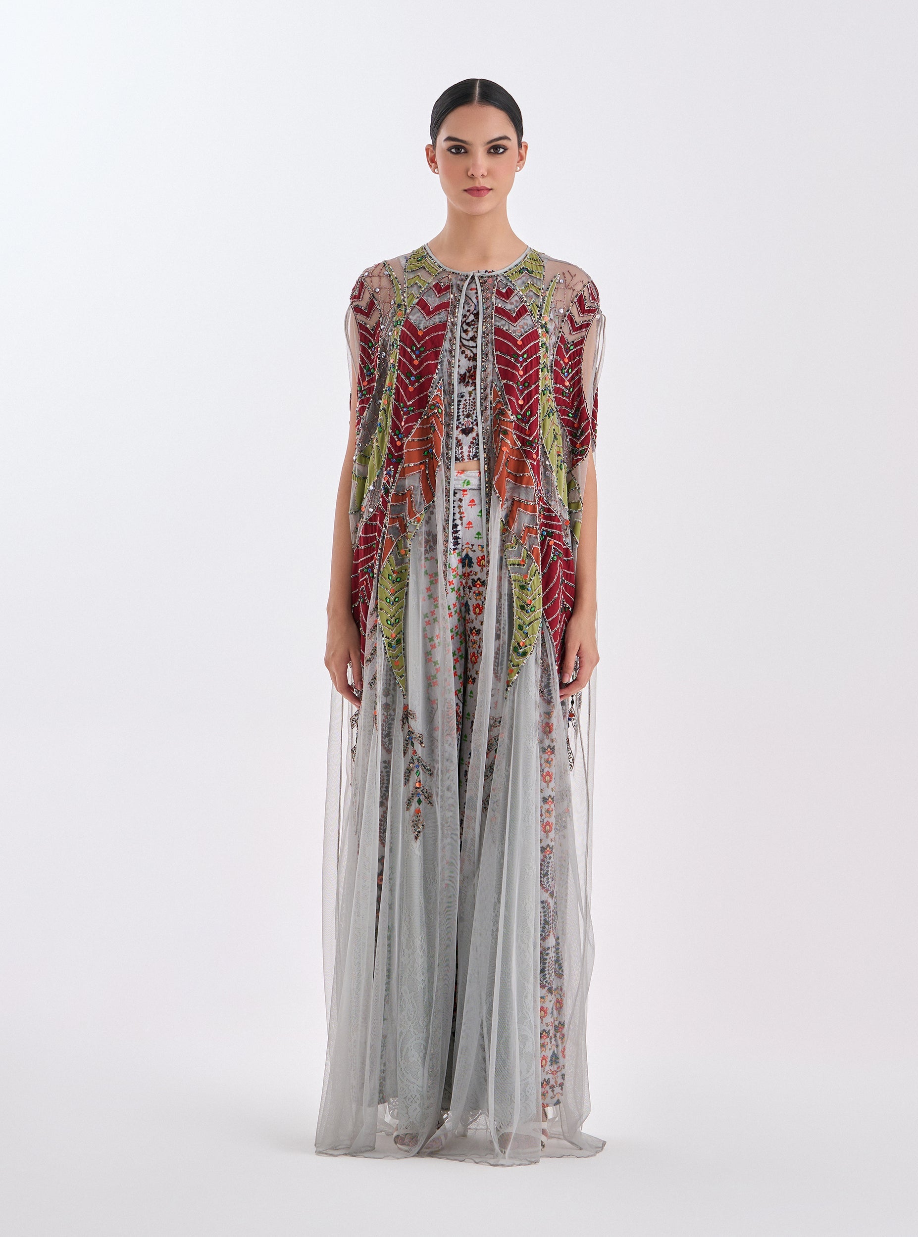 طقم من ثلاث قطع مطرز يدويا مع شال طويل